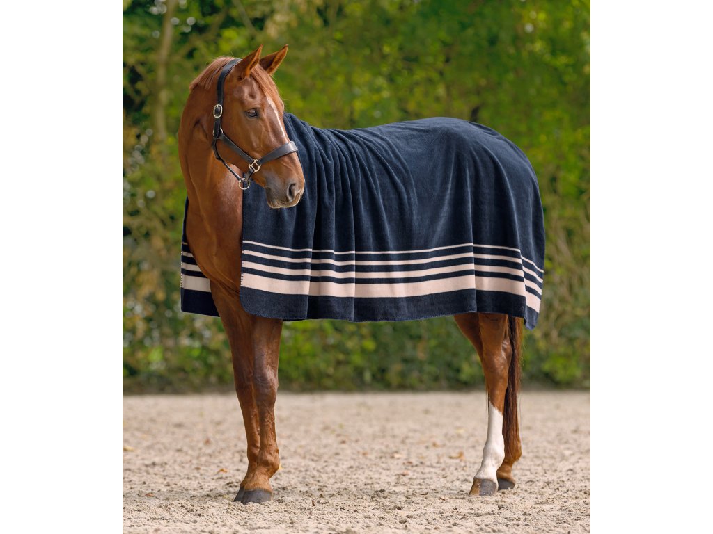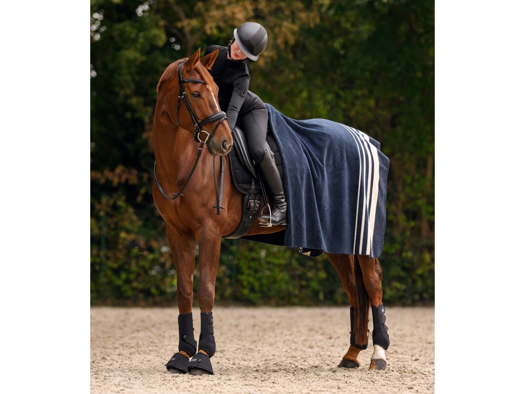 Fleecová deka Sölden je vyrobena z hřejivého fleecového materiálu o gramáži 330 g/m², který poskytuje velmi dobrou tepelnou izolaci. Je praktickým a všestranným doplňkem vhodným na závody, do stáje i pro relax v boxu. Kontrastní pruhy na spodním okraji dodávají dece moderní a atraktivní vzhled. Rozměry: 180 × 200 cm.