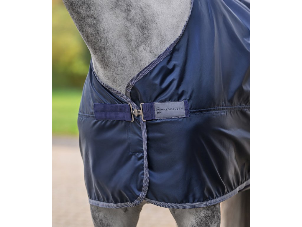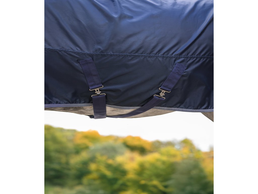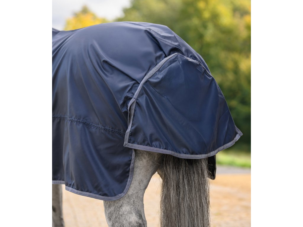 Nepromokavá deka z lehkého a odolného materiálu o pevnosti 420 D poskytuje spolehlivou ochranu v nepříznivém počasí. Prodyšný vnější materiál s vodním sloupcem 3 000 mm zajišťuje komfort při nošení a účinně chrání před deštěm. Velká ocasní klopa poskytuje dodatečnou ochranu proti větru a vlhkosti. Deka je vybavena jednoduchým předním zapínáním na T-přezku se suchým zipem a křížovými popruhy pod břichem. Jedná se o lehkou a prodyšnou pláštěnku, která je ideální pro jarní a podzimní období. Lze ji prát v pračce na 30 °C.