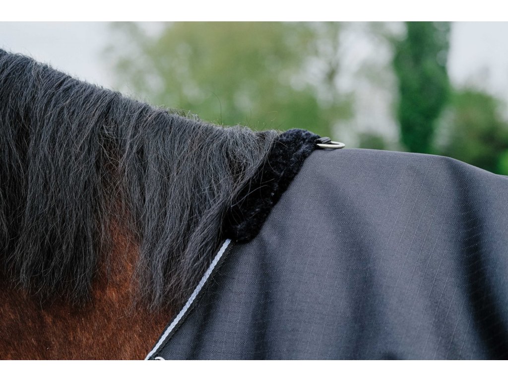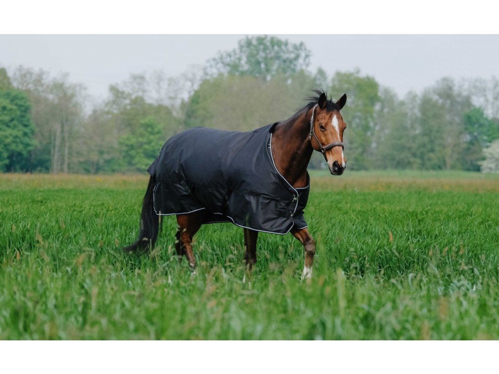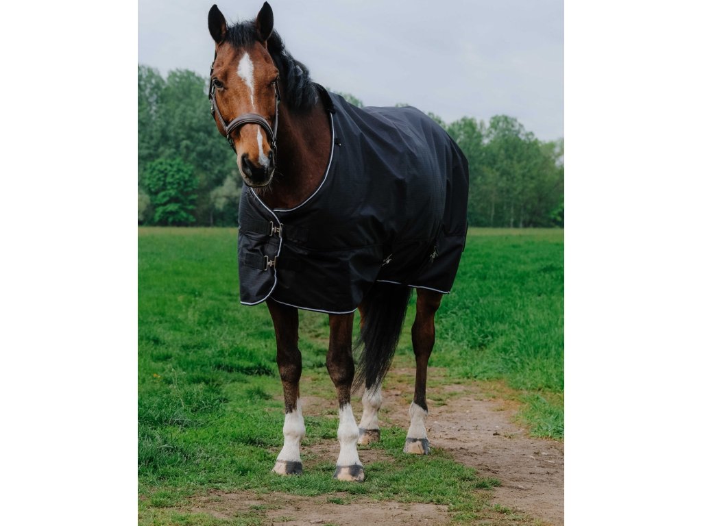 Tato nepromokavá výběhová deka bez zateplení je vyrobena z 600 D polyesteru, který je odolný vůči roztržení a je doplněn podlepenými švy pro spolehlivou ochranu před vlhkostí. Vnitřní stranu tvoří hladká nylonová podšívka, která zajišťuje maximální pohodlí při nošení. Ochranu zvyšuje velká nepromokavá klopa na ocas. V oblasti kohoutku je deka vybavena měkkým polstrováním ze syntetického beránku, které zabraňuje odření a zvyšuje komfort. Praktické křížové zapínání pod břichem zajišťuje stabilní a bezpečné usazení při pohybu koně. Krční díl lze k této dece dokoupit samostatně.