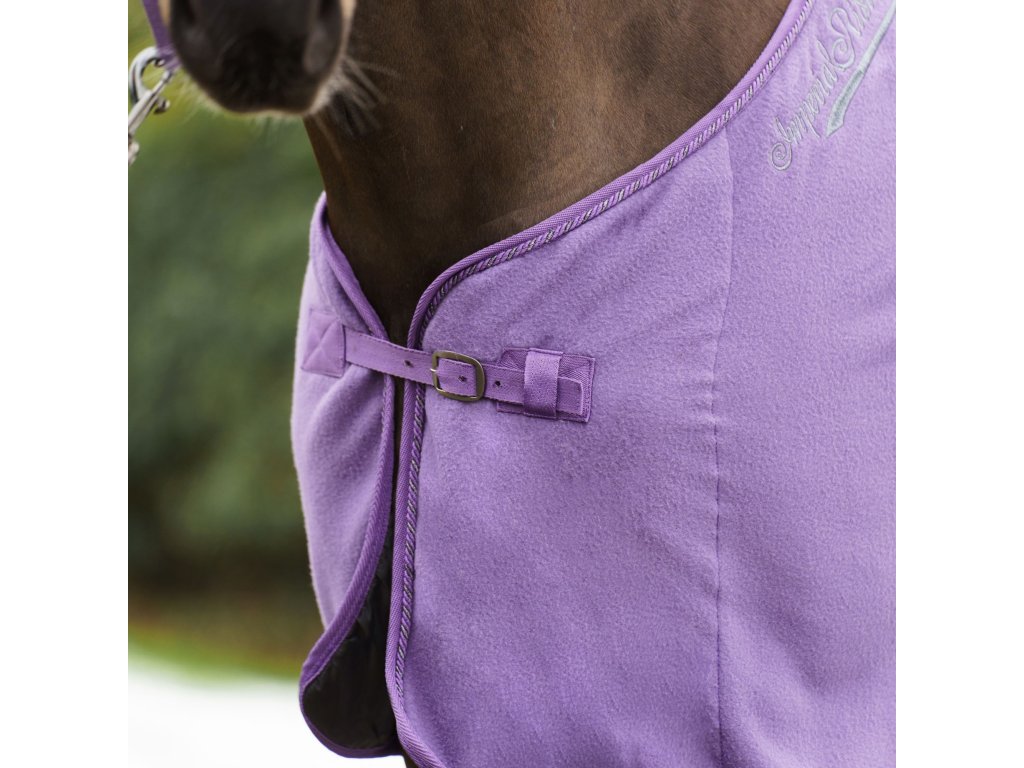 Klasická odpocovací deka vhodná pro použití po tréninku, během přepravy nebo při odpočinku ve stáji. Je vyrobena z měkkého fleecového materiálu, který zajišťuje tepelný komfort a zároveň podporuje efektivní odvod vlhkosti. Deka je zdobena elegantní paspulkou a decentním logem značky Imperial Riding. Vybavena je jednoduchým předním zapínáním na přezku a popruhem pod ocasem.