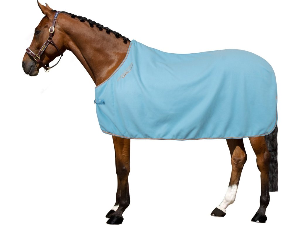 Klasická odpocovací deka vhodná pro použití po tréninku, během přepravy nebo při odpočinku ve stáji. Je vyrobena z měkkého fleecového materiálu, který zajišťuje tepelný komfort a zároveň podporuje efektivní odvod vlhkosti. Deka je zdobena elegantní paspulkou a decentním logem značky Imperial Riding. Vybavena je jednoduchým předním zapínáním na přezku a popruhem pod ocasem.