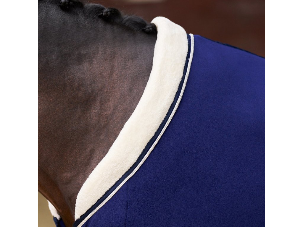 Odpocovací deka Essential od Imperial Riding kombinuje pohodlí s elegantním designem. Límec z umělé kožešiny dodává dece nádech luxusu a pohodlí. Deka má dvojité přední zapínání kryté klopou se suchým zipem a nastavitelné křížové popruhy pod břichem. Elegantní paspulka a vyšívané kovové logo doplňují celkový vzhled a podtrhují charakteristický styl značky Imperial Riding.