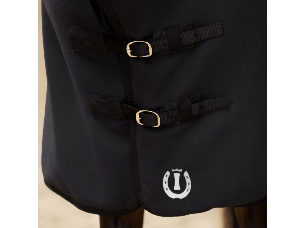 Odpocovací deka s integrovaným krčním dílem je vyrobena z kvalitního fleecového materiálu, který účinně odvádí vlhkost od těla koně, podporuje rychlé schnutí a pomáhá předcházet prochladnutí. Měkký a hřejivý fleece zajišťuje vysoký komfort při nošení a zároveň si zachovává dobrou prodyšnost. Deka je vybavena dvojitým předním zapínáním, křížovými popruhy pod břichem a popruhem pod ocasem. Krční díl je v horní části opatřen popruhem se suchým zipem, který umožňuje připnutí k ohlávce. Výrazná výšivka dodává dece charakteristický a reprezentativní vzhled značky Imperial Riding.