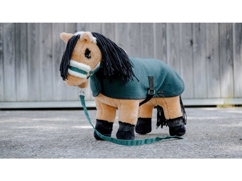 Fleecová deka pro plyšové koníky z kolekce Pony Academy je navržena přesně jako klasické koňské deky, jen v mini verzi pro dětské hraní. Deka je vyrobena z měkkého fleecu ze 100% polyesteru a zajišťuje hřejivost i komfort pro plyšového koníka. Má praktické zapínání na suchý zip v oblasti plecí a pod břichem. Límec je vyroben ze syntetického beránku, popruh pod ocasem slouží k pevnému uchycení. Deka je doplněna látkovým štítkem a představuje stylovou a funkční hračku, kterou lze snadno prát a udržovat.