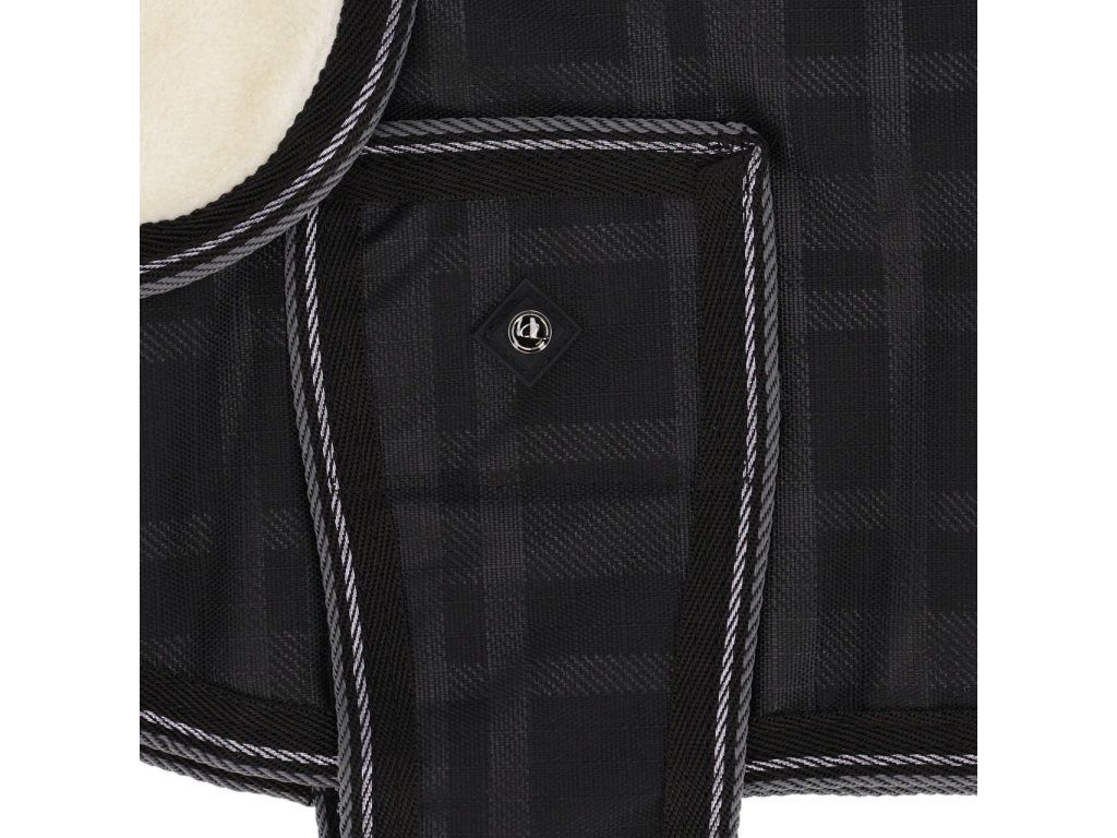 Vysoce kvalitní deka pro psy se zateplením 100 g, která poskytuje teplo během chladných dnů i v různých povětrnostních podmínkách. Vnější materiál je nepromokavý s pevností 1200 D a vodním sloupcem 3000 mm/m², zároveň je prodyšný pro pohodlí psa. Deka je vybavena předním a břišním zapínáním na suchý zip a elastickými šňůrkami u zadních nohou, které zajišťují stabilní usazení. Dále má praktický otvor na protažení vodítka a hřejivý fleecový límec.
