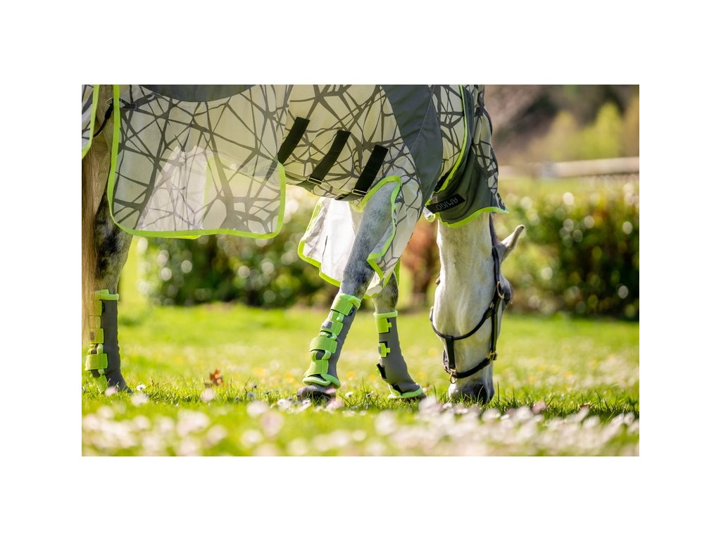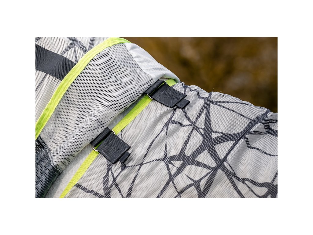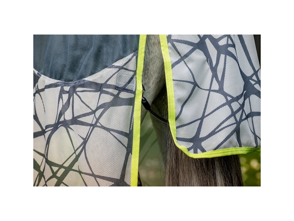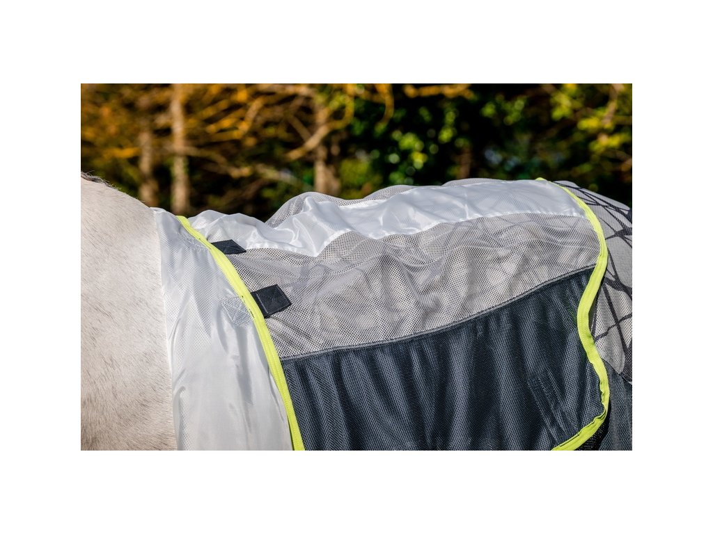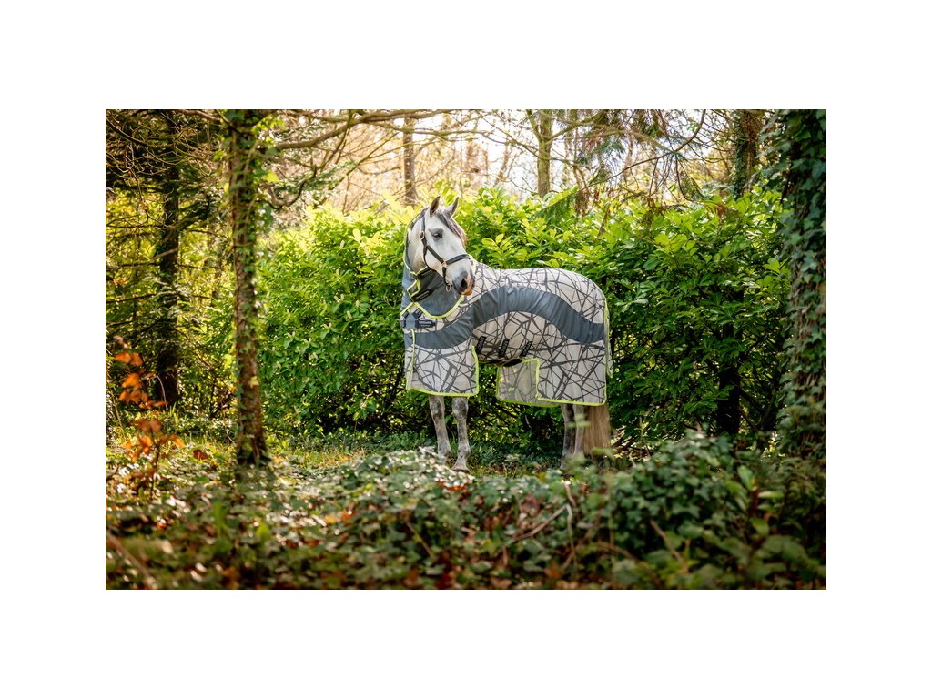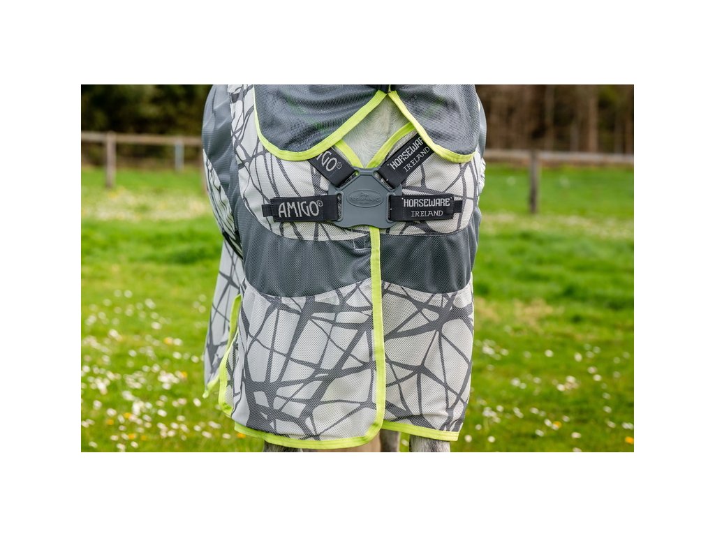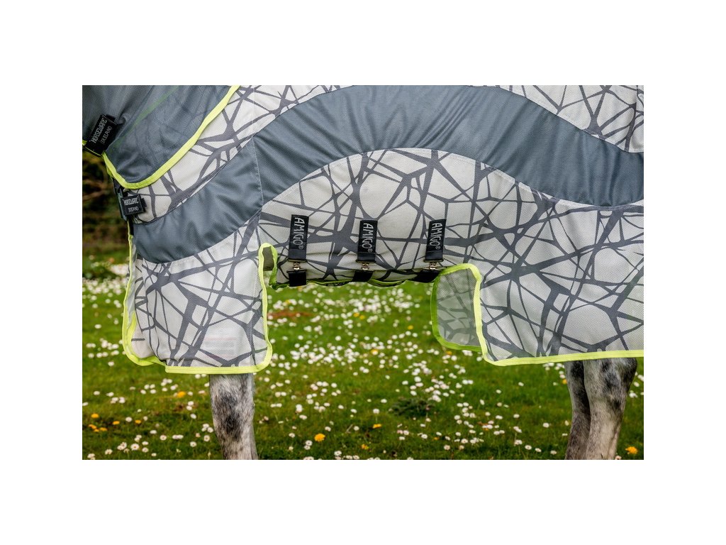 Ultralehká deka Amigo poskytující výbornou ochranu před hmyzem a 65% ochranu před UV zářením. Inovativní design prošel řadou výzkumů, které prokázaly, že zebří pruhy působí jako přirozený odstrašující prostředek a je pro hmyz matoucí. Vrstvené černé čáry na šedém pozadí působí na mouchy jako optický klam. Vzor rozbíjí tvar koně a hmyz ho následně nedokáže identifikovat jako cíl. Deka je vyrobena ze síťovaného polyesterového materiálu, který je odolný před roztržením. Vybavena předním velmi praktickým a jednoduchým zapínáním na disk. Dále plným pokrytím břicha s trojitým zapínáním, popruhem pod ocasem, prodlouženou ochranou ocasu a také prodlouženým střihem v oblasti nohou. Dodávána včetně odnímatelného krčního dílu.