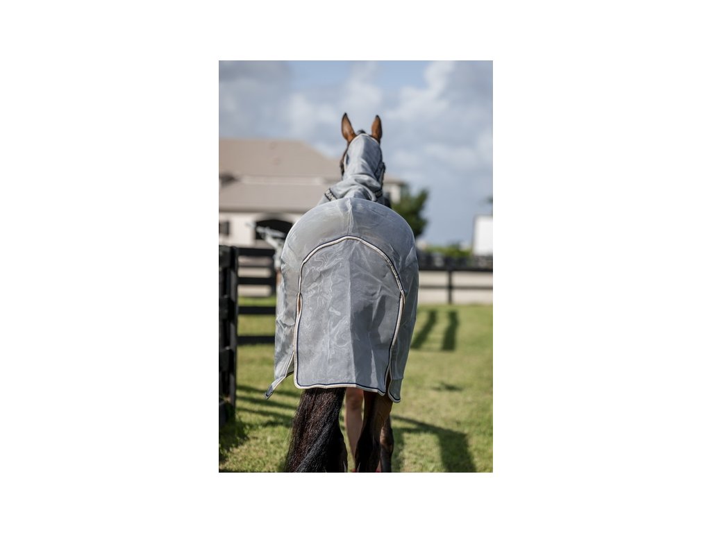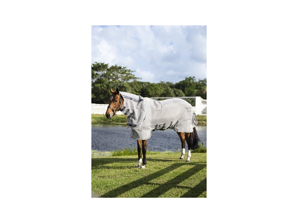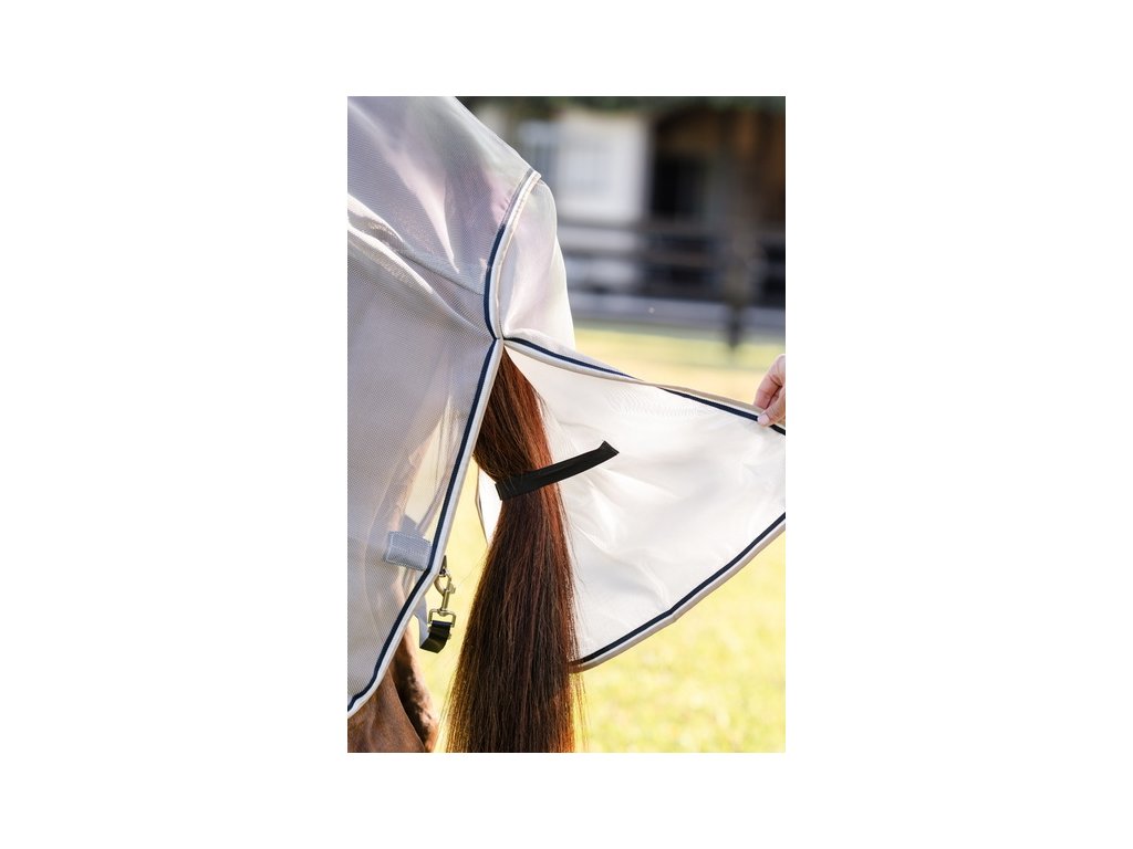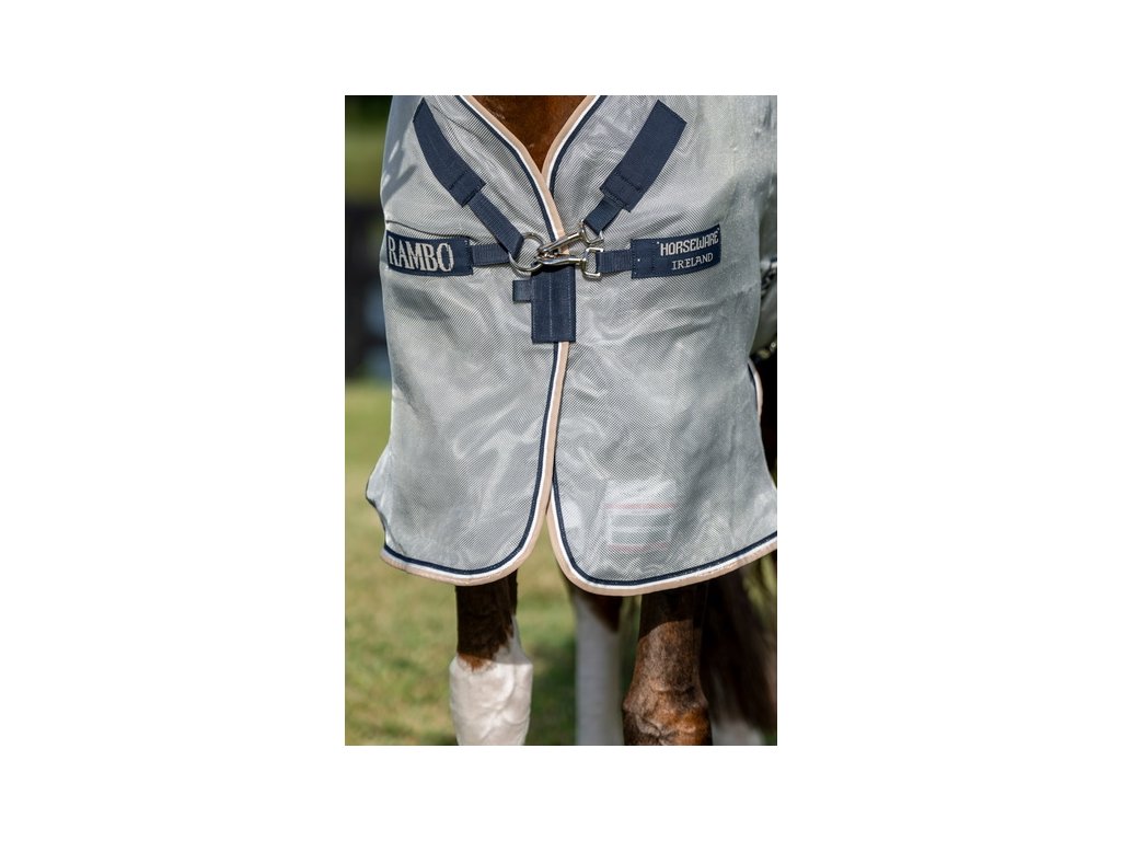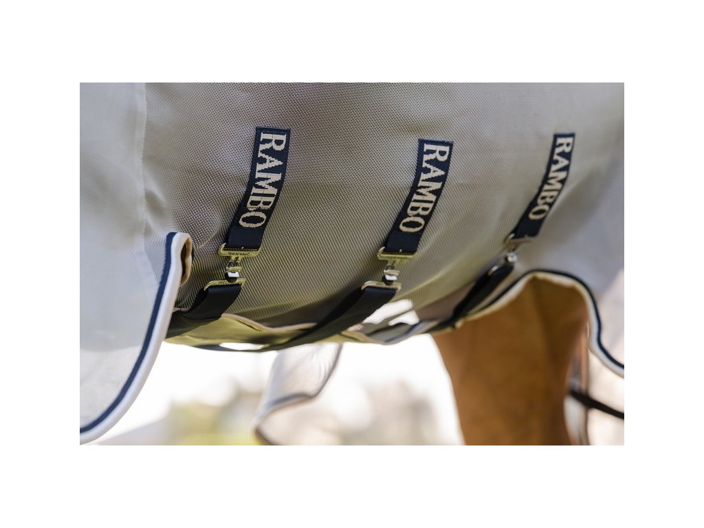 Unikátní deka ze síťoviny proti hmyzu Rambo Protector Integrated, dodávaná včetně integrovaného krčního dílu. Krční díl nelze odepnout a poskytuje ještě lepší ochranu před hmyzem. Kromě ochrany před hmyzem deka zároveň poskytuje 65% ochranu před UV zářením. Vyrobena z jedinečného a patentovaného síťovaného materiálu, který je prodyšný, extrémně odolný a vydrží mnoho sezón. Deka zajišťuje koni maximální komfort a pohodlí. Vepředu je vybavena praktickým a jednoduchým zapínáním ve tvaru V. Dále má plné pokrytí pod břichem včetně trojitého zapínání, popruh pod ocasem, prodlouženou ochranu ocasu a anatomický střih v oblasti nohou. K dece lze dokoupit zvlášť masku proti hmyzu a vnitřní nepromokavý liner.