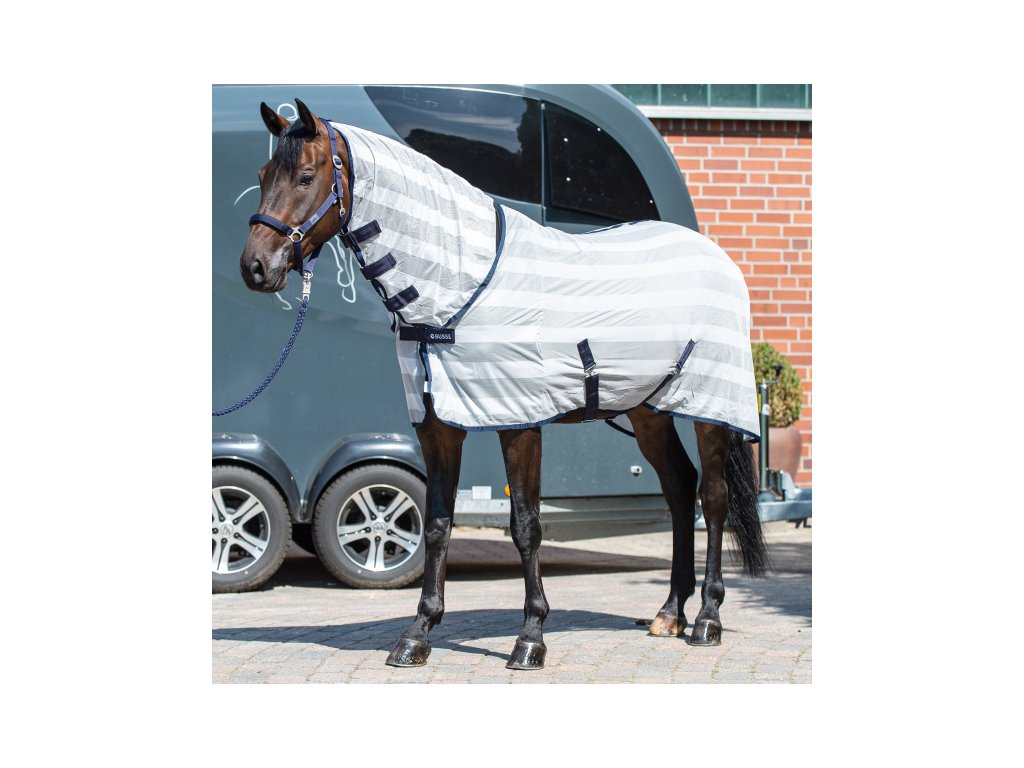 Deka proti hmyzu vhodná především pro přepravu koní. Je vyrobená z polyesterové síťoviny, která odpuzuje nečistoty a vlhkost. Deka má tkaný vzor pruhů. Krční část je elastická se zapínáním na suchý zip. V případě potřeby lze připevnit i k ohlávce k nátylníku. Deka koni velmi dobře padne díky středovému zadnímu švu. Délkově nastavitelné břišní zapínání a jednoduché zapínání T přezkou s krytem v oblasti hrudníku. Popruh pod ocasem.
