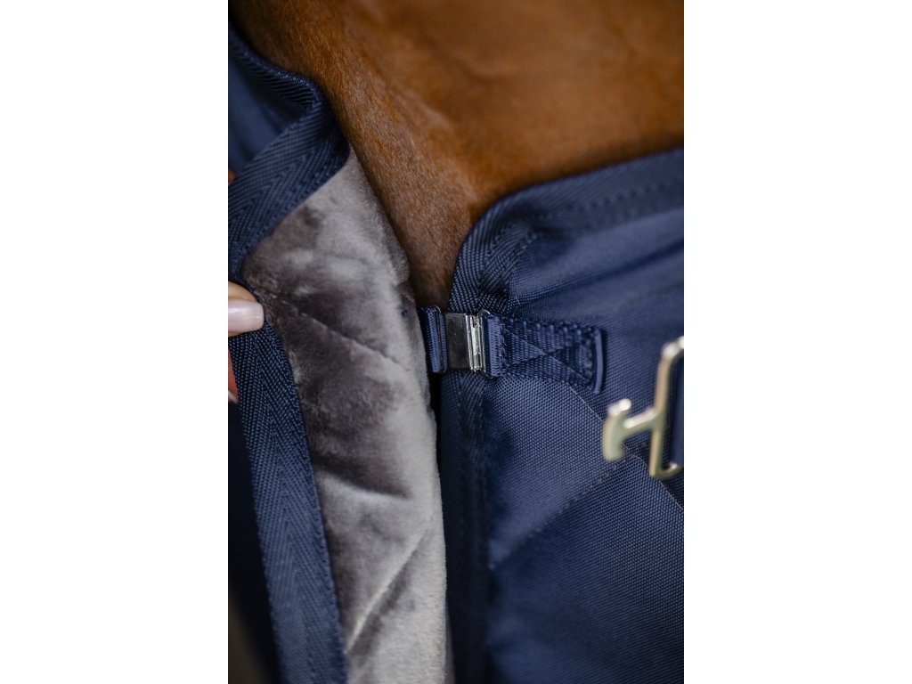 Dopřejte svému koni maximální komfort a pohodlí se stájovou dekou Cosy od výrobce Bucas. Tato deka je navržena pro pohodlí a ochranu ve stáji a skvěle kombinuje elegantní vzhled a praktické provedení. Podšívka ze syntetické kožešiny je mimořádně jemná, hřejivá a příjemná na dotek, takže zajišťuje vysoký komfort při odpočinku po práci i během chladnějších dnů. Odolný prošívaný vnější materiál poskytuje spolehlivou ochranu a dlouhou životnost. Je vybavená předním jednoduchým zapínáním na T-přezku, křížovým zapínáním pod břichem a popruhem pod ocasem.