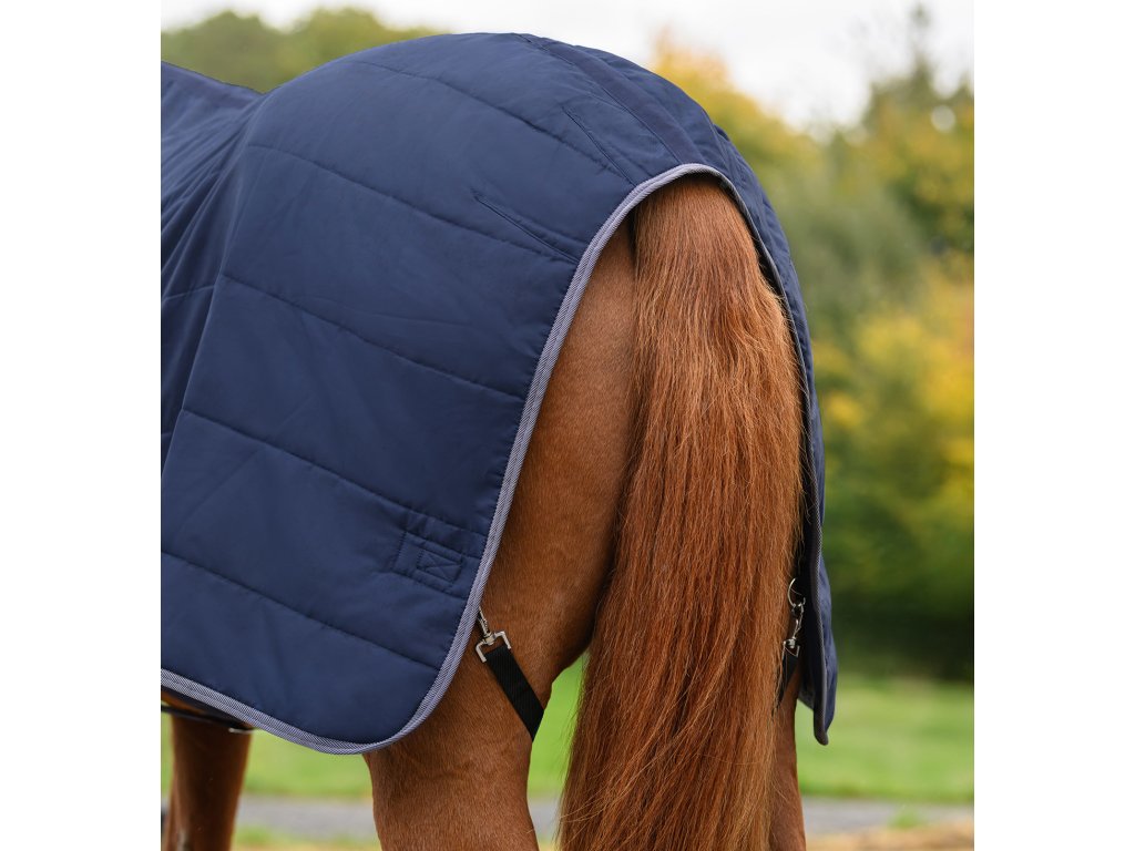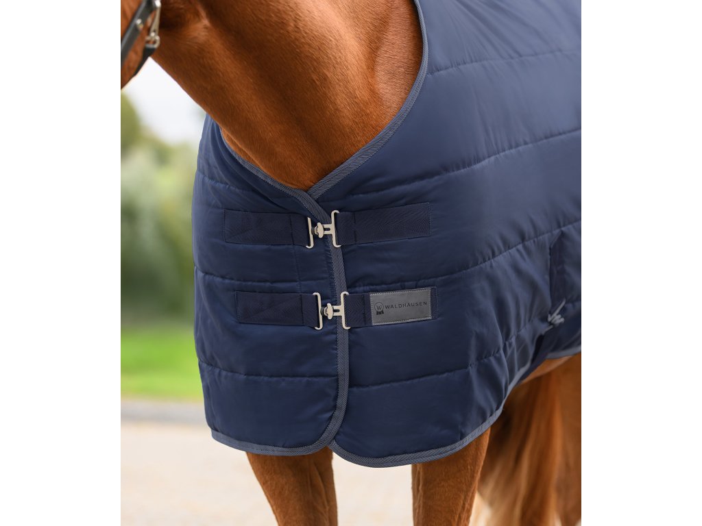 Stájová deka se zateplením 100 g poskytuje spolehlivé teplo a vysoký komfort při každodenním použití ve stáji. Je vyrobena z odolného a prodyšného polyesteru s pevností 420 D. Deka je vybavena dvojitým předním zapínáním na T-přezky se suchým zipem, nastavitelnými křížovými popruhy pod břichem, ocasní šňůrou a popruhy mezi zadní nohy. Klasické funkční provedení zajišťuje vysokou odolnost, komfort i praktické využití. Lze ji prát v pračce na 30 °C.