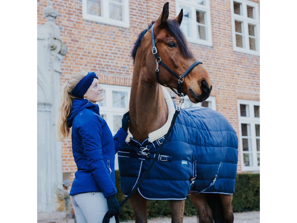 Luxusní stájová deka zajišťující výborný tepelný komfort díky své izolaci z polyfillu, zateplení 350g. Vhodná do stáje v zimních měsících. Deka je obzvlášť příjemná a prodyšná. Vyrobena z vysoce kvalitního materiálu, který je odolný před roztržením, pevnost 900D. Šetrná polyesterová DRYsense podšívka chránící před odíráním. Podšívka je zároveň rychleschnoucí a nabízí pocit sucha i při vysoké vlhkosti vzduchu. Vybavena příjemným límcem, který také zabraňuje před odíráním. Široký střih v oblasti plecí dokonale sedne a nabízí pohodlí a dostatek prostoru pro pohyb. Přední zapínání pomocí V-Quick. Deka je dále vybavena praktickým křížovým zapínáním pod břichem, popruhem pod ocasem, ochranou ocasu a očky, ke kterým lze připrevnit popruhy mezi nohy.