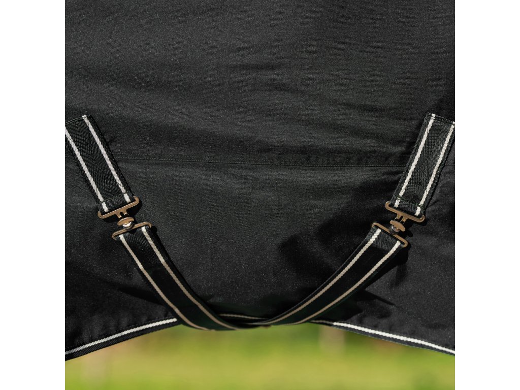 Výběhová deka s vyšším krkem a zateplením 400 g poskytuje spolehlivou ochranu a komfort v nepříznivém počasí. Kombinuje funkčnost, odolnost a moderní vzhled. Odolný, nepromokavý vrchní materiál s pevností 600 D chrání před deštěm i větrem, zatímco hřejivá výplň zajišťuje pohodlí při celodenním nošení. Deka je vybavena dvojitým předním zapínáním na T-přezky, nastavitelným křížovým zapínáním pod břichem a popruhy mezi zadní nohy.