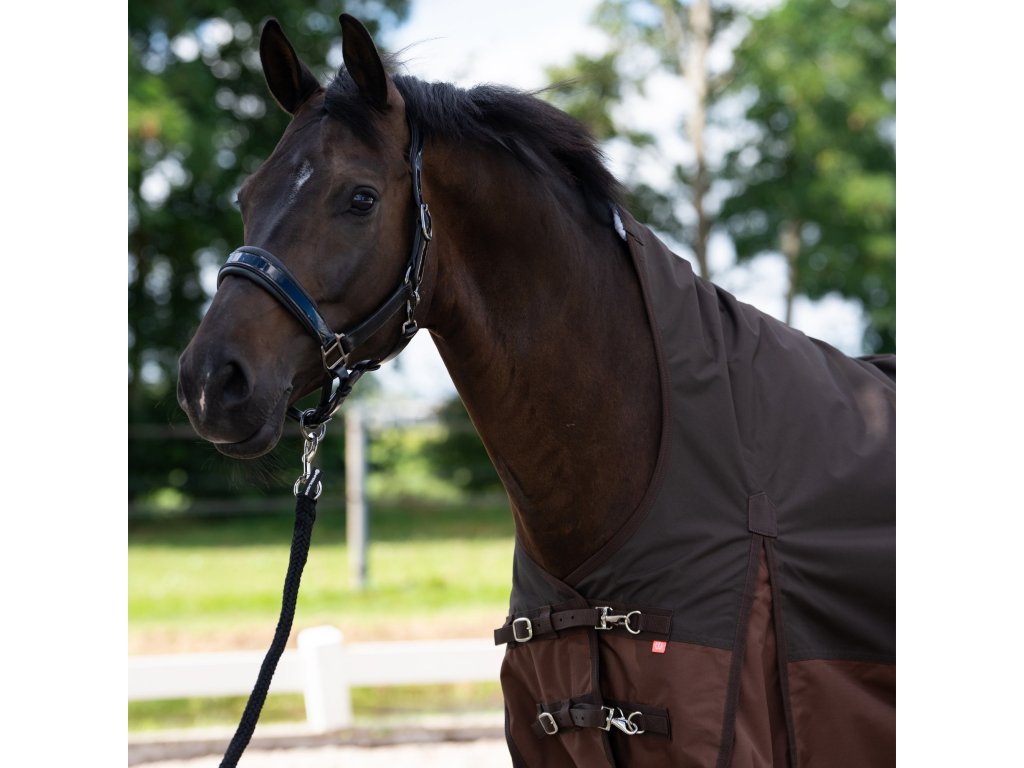 Výběhová deka s vyšším krkem a zateplením 300 g poskytuje spolehlivou ochranu a vysoký komfort i v nepříznivých povětrnostních podmínkách. Kombinuje funkčnost, odolnost a moderní vzhled. Odolný vrchní materiál o pevnosti 600 D je nepromokavý (vodní sloupec 3000 mm) a účinně chrání koně před deštěm, větrem i vlhkostí, zatímco hřejivá výplň zajišťuje tepelný komfort při celodenním nošení. Zvýšený krk s měkkým fleecovým lemem minimalizuje tlak v oblasti kohoutku, zvyšuje tepelný komfort a omezuje pronikání chladu. Deka je vybavena dvojitým předním zapínáním na přezky, křížovým zapínáním pod břichem a popruhy mezi zadní nohy pro bezpečné a stabilní uchycení.