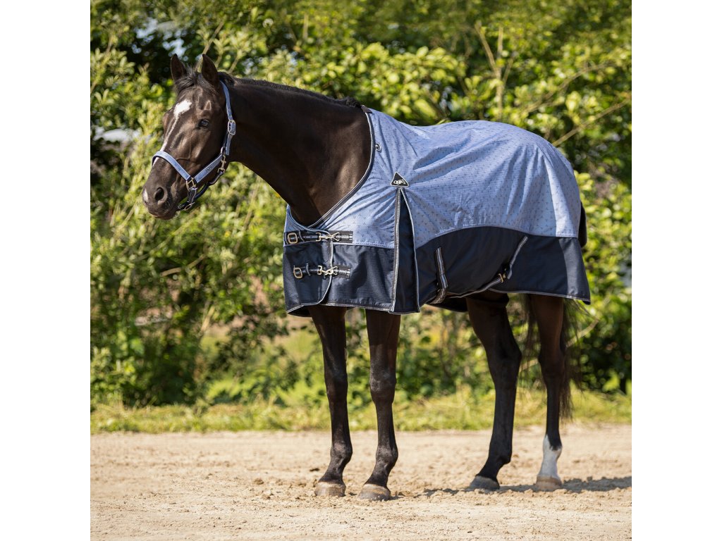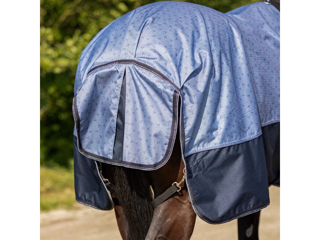 Kvalitní výběhová deka s fleecovou podšívkou je vyrobena z prodyšného a nepromokavého materiálu s pevností 600 D a vodním sloupcem 3000 mm. Materiál pomáhá udržet koně v teple a suchu i během nepříznivého počasí. Deka je vybavena dvojitým předním zapínáním, křížovým zapínáním pod břichem, popruhy mezi nohy a popruhem pod ocasem. Střih zahrnuje ramenní rozparky pro volný pohyb, měkkou fleecovou podšívku v oblasti kohoutku a ochranu ocasu. V oblasti hrudníku a na ocasní klopě je deka podšitá hladkou látkou, která pomáhá předcházet odírání. Díky prodlouženému střihu v oblasti hrudníku je deka vhodná i pro širší koně. Lze prát v pračce na 30 °C. nepoužívejte změkčovače tkanin a nesušte v sušičce. Nečistěte chemicky.
