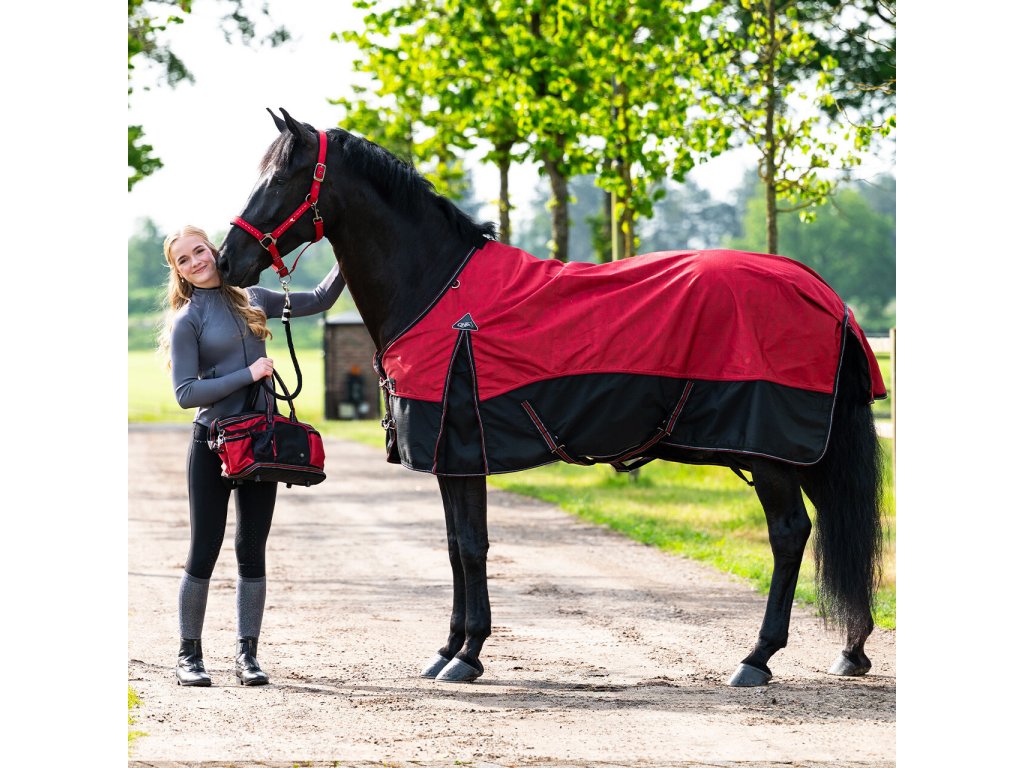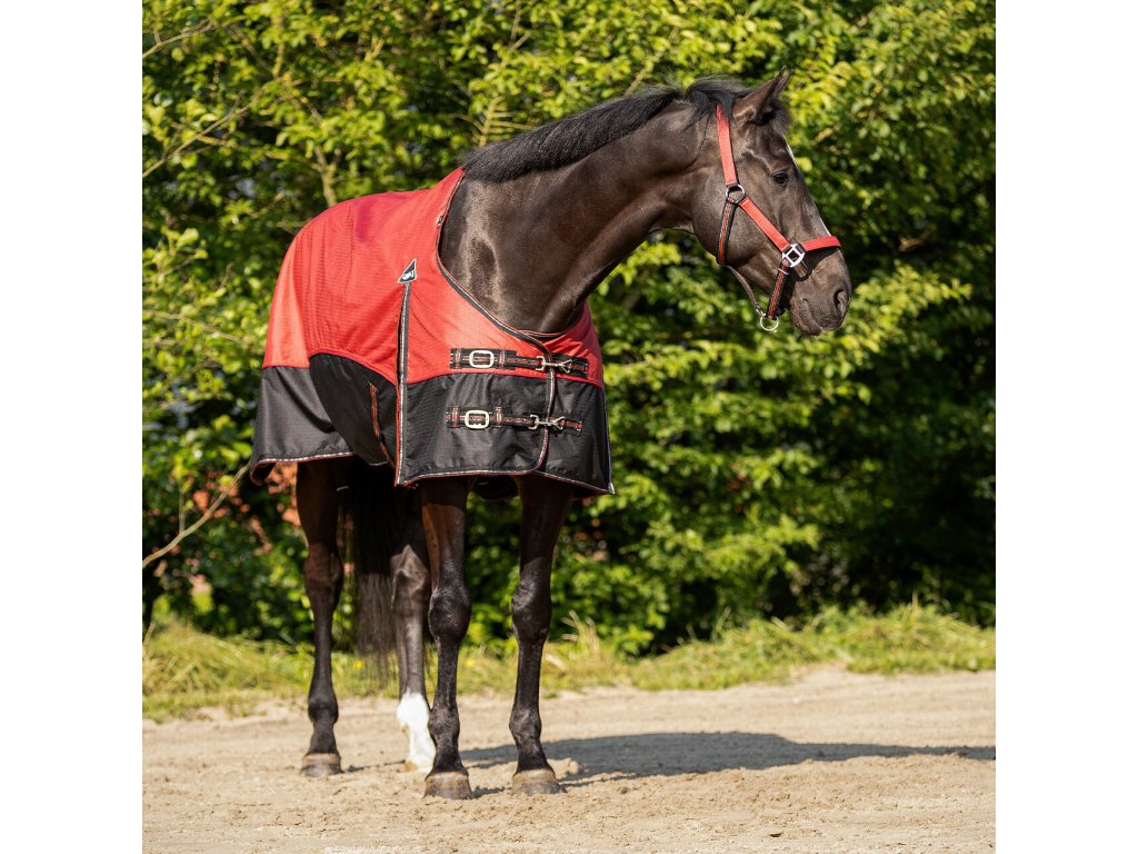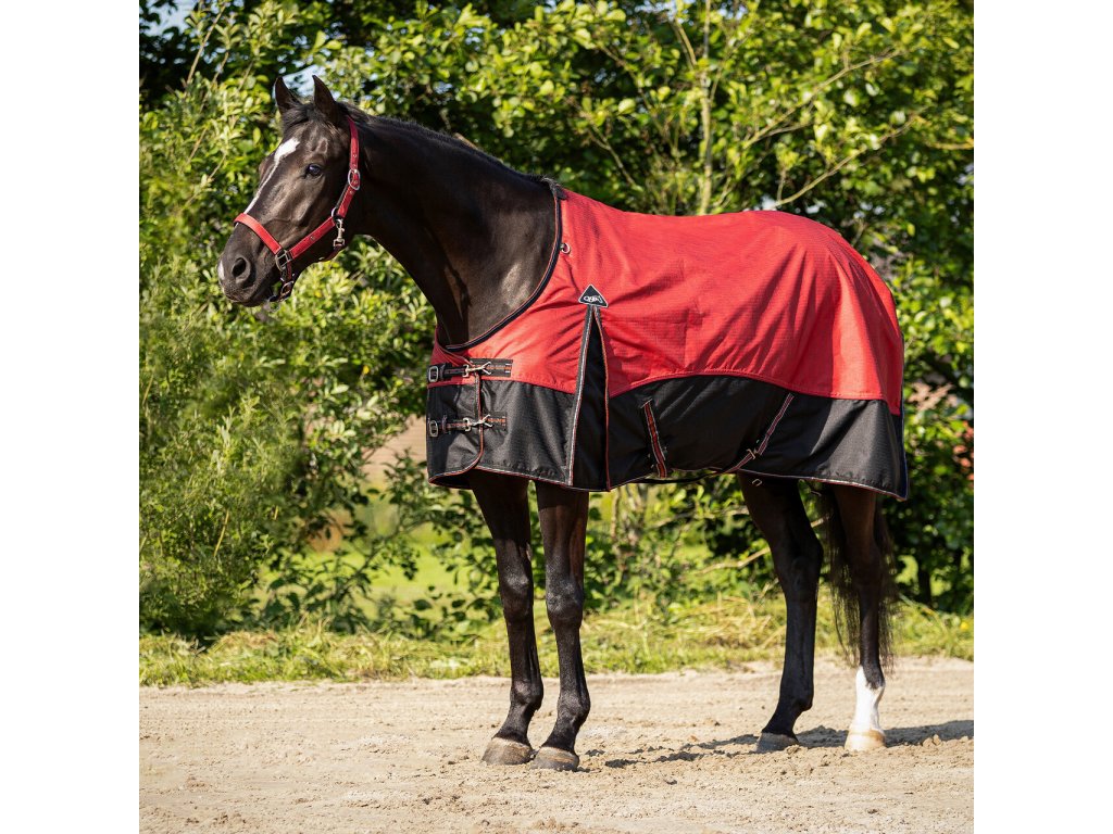 Kvalitní výběhová deka s fleecovou podšívkou je vyrobena z prodyšného a nepromokavého materiálu s pevností 600 D a vodním sloupcem 3000 mm. Materiál pomáhá udržet koně v teple a suchu i během nepříznivého počasí. Deka je vybavena dvojitým předním zapínáním, křížovým zapínáním pod břichem, popruhy mezi nohy a popruhem pod ocasem. Střih zahrnuje ramenní rozparky pro volný pohyb, měkkou fleecovou podšívku v oblasti kohoutku a ochranu ocasu. V oblasti hrudníku a na ocasní klopě je deka podšitá hladkou látkou, která pomáhá předcházet odírání. Díky prodlouženému střihu v oblasti hrudníku je deka vhodná i pro širší koně. Lze prát v pračce na 30 °C. nepoužívejte změkčovače tkanin a nesušte v sušičce. Nečistěte chemicky.