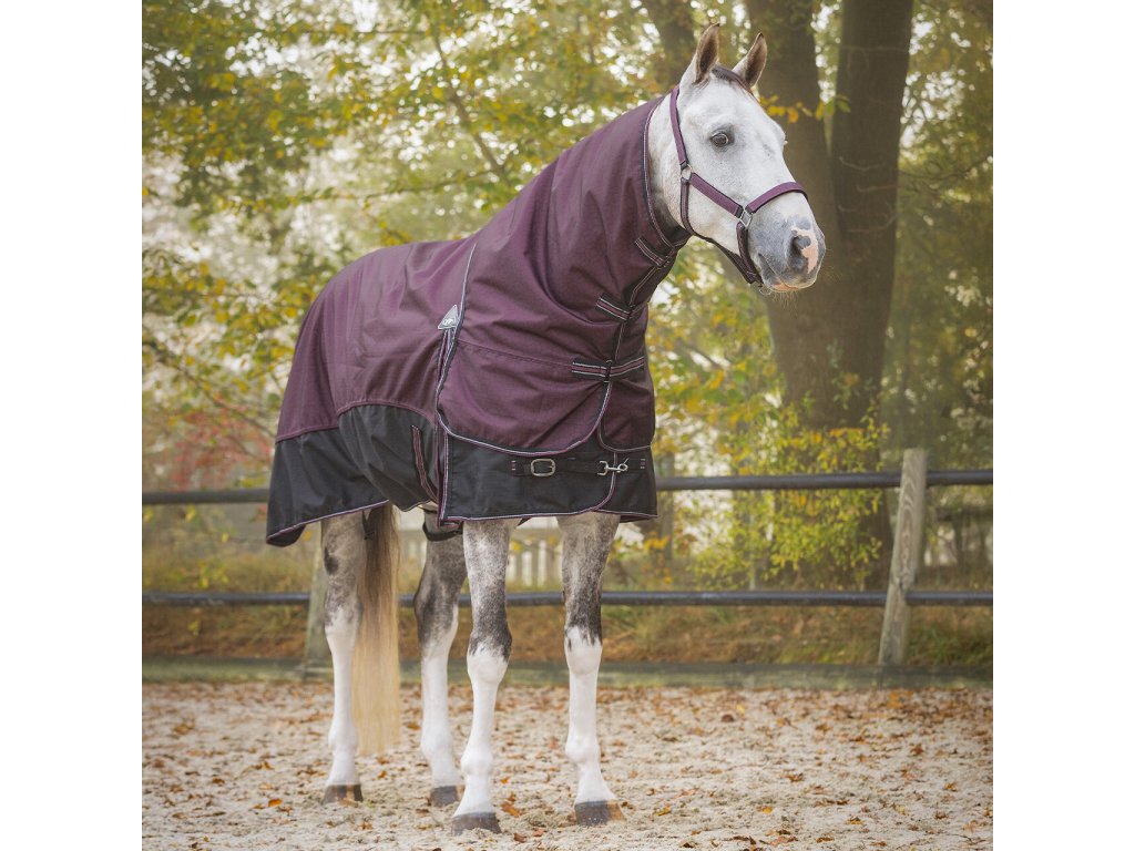 Velmi kvalitní výběhová deka se zateplením 150 g a integrovaným krčním dílem. Je vyrobena z pevného, prodyšného a nepromokavého materiálu s pevností 1200 D a vodním sloupcem 3000 mm/m², který udržuje koně v teple a suchu i během nepříznivého počasí. Deka je vybavena dvojitým předním zapínáním, křížovým zapínáním pod břichem s gumovými konci, popruhy mezi nohy a popruhem pod ocasem. Střih deky zahrnuje ramenní rozparky, měkký fleece v oblasti kohoutku a ochranu ocasu. V oblasti hrudníku je navíc nylonová vložka, která zabraňuje oděru. Díky prodlouženému střihu v oblasti hrudníku je deka vhodná i pro širší koně.