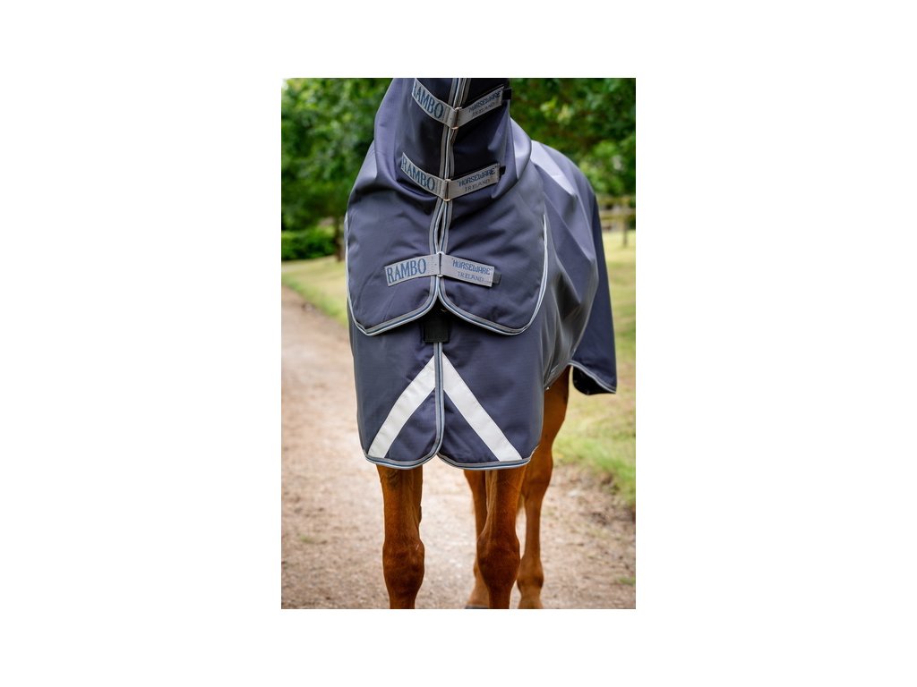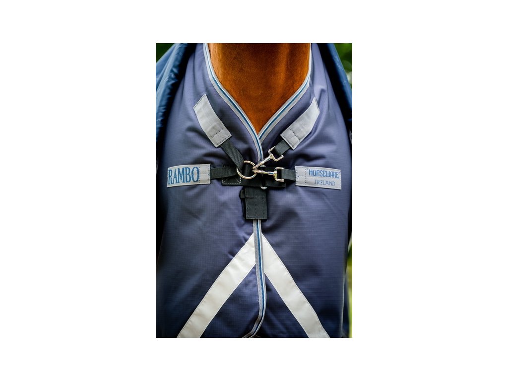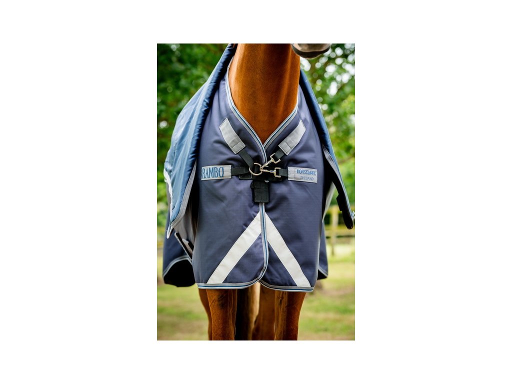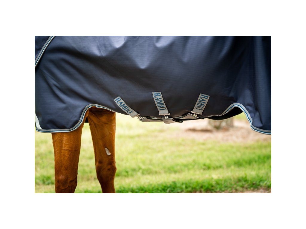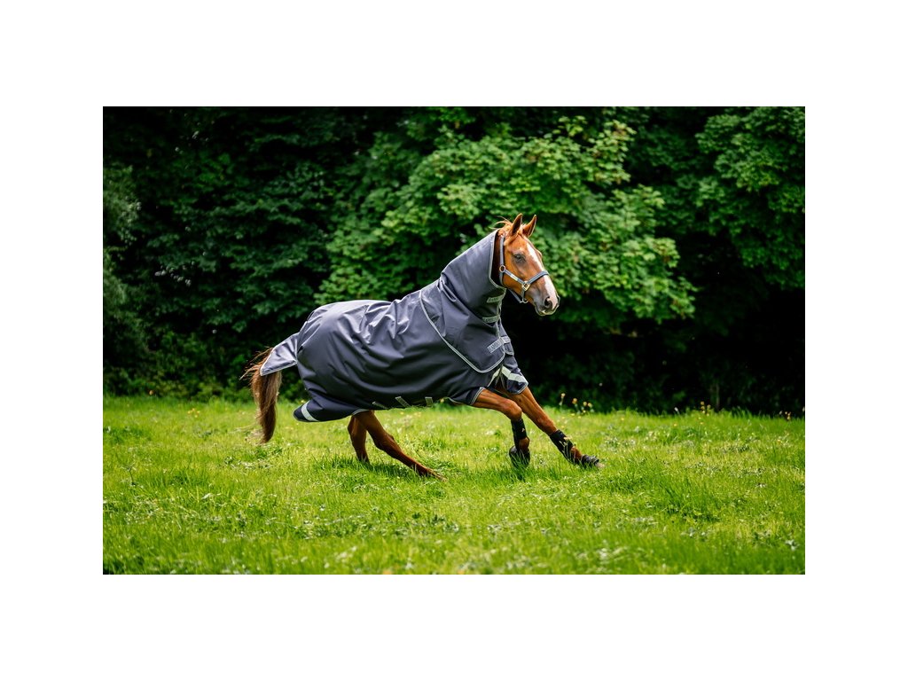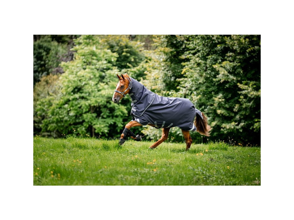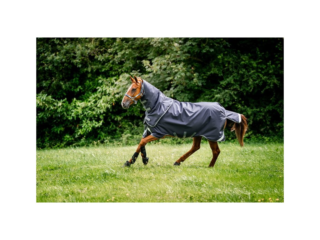 Kvalitní výběhová deka se zateplením 100 g. Dodávána včetně odnímatelného krčního dílu a dvou linerů 100 g a 300 g. Díky linerům si můžete deku v chladném zimním počasí přizpůsobit podle změn teplot. Deka je vyrobena z nejsilnějšího a nejodolnějšího materiálu na trhu - balistického nylonu, pevnost 1000 D. Obsahuje zpevňující vazbu, díky níž je tkanina Rambo o 60 % pevnější. Materiál je nepromokavý a vysoce prodyšný. Podšívka vyrobena z hladkého polyesteru, který je šetrný k pokožce a chrání před odíráním, podšívka je zároveň antistatická a antibakteriální. Mezi vlastnosti deky patří speciální střih Surefit v oblasti krku, který nabízí maximální volnost v pohybu. Dále přední jednoduché zapínání na karabiny ve tvaru V, trojité křížové zapínání pod břichem, popruh pod ocasem a ochrana ocasu. Ocasní popruh lze snadno umýt a otřít. Anatomický střih v oblasti nohou nabízí maximální pohodlí. Opatřena reflexními prvky pro větší bezpečnost.