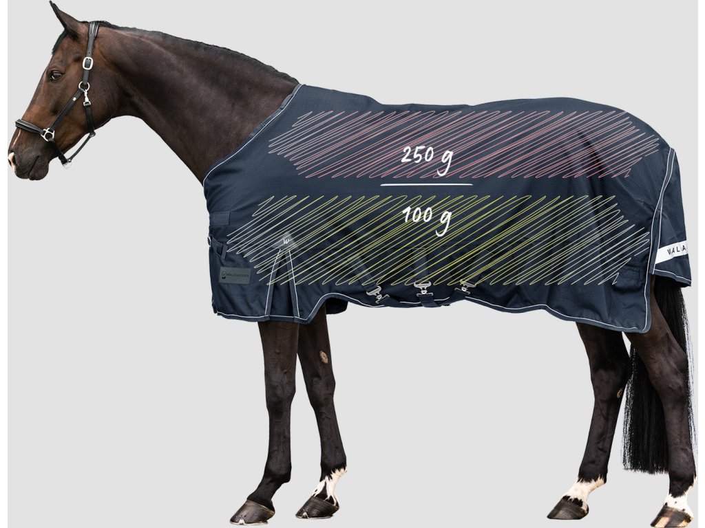 Vysoce kvalitní výběhová deka, která spojuje pohodlí, funkčnost a špičkovou kvalitu. Díky inovativní vícevrstvé výplni Multi Layer poskytuje perfektní ochranu před nepříznivým počasím = více tepla, méně váhy. Na hřbetě koně je deka nejvíce zateplená (250 g), zatímco v oblasti boků má lehčí výplň (100 g) pro vyšší pohodlí a volnost pohybu. Deka je vybavena speciálními pěnovými vložkami po stranách kohoutku, které odlehčují tlak na trnové výběžky. Vnější materiál s pevností 1200 D je prodyšný, voděodolný (vodní sloupec 3000 mm) a dostatečně odolný pro každodenní použití. Praktické přední zapínání ve tvaru V je nastavitelné, doplněné karabinou a jištěné suchým zipem. Dále je deka vybavena trojitým křížovým zapínáním pod břichem, popruhy mezi zadní nohy, zadním popruhem pod ocasem a krytkou ocasu pro maximální ochranu. Deka je také vybavena poutky pro připevnění krčního dílu. Je plně kompatibilní se systémem Clip-In, díky kterému lze snadno doplnit spodní deku s libovolným zateplením. Přídavné deky naleznete ZDE. Pro maximální bezpečnost je deka opatřena reflexními prvky a kvalitními přezkami. Vnitřní antibakteriální vložka Stay Clean představuje praktické a hygienické řešení při vyzkoušení deky. Zabraňuje zachytávání chlupů a nečistot. Pokud deka sedí, vložku jednoduše odstraníte a vyhodíte. Deka je dodávána v praktické tašce na zip.