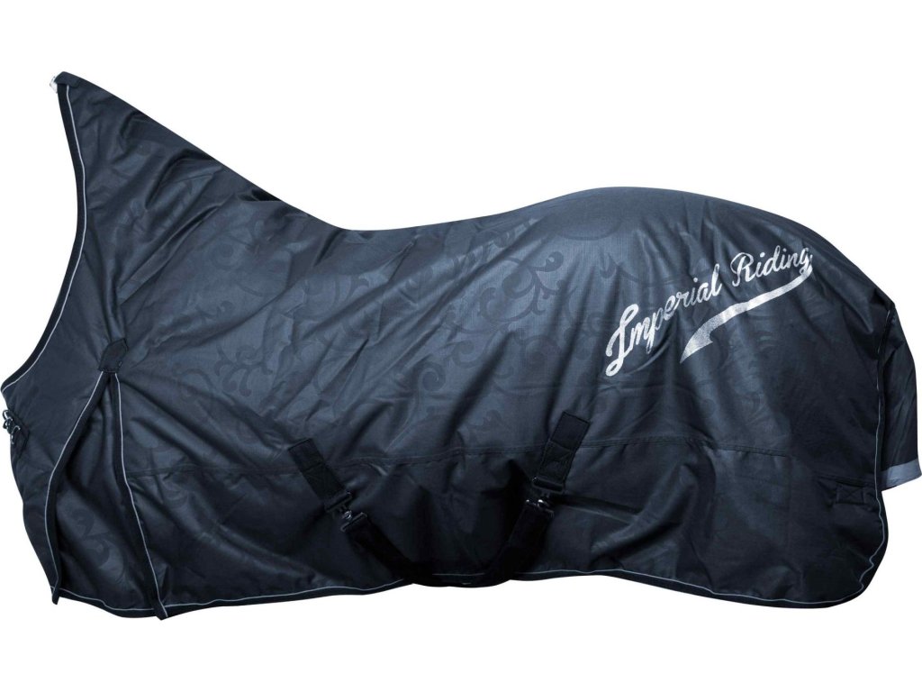 Výběhová deka Super-dry s vyšším krkem a zateplením 300 g spojuje moderní design, funkčnost a spolehlivou ochranu v chladném počasí. Je vyrobena z pevného materiálu 600 D, který je nepromokavý a zároveň prodyšný, takže spolehlivě chrání před deštěm, sněhem i větrem. Inovativní materiál Super Dry poskytuje účinnou izolaci proti chladu, vlhkosti i hmyzu, a zároveň zůstává lehký a odolný. Deka vyniká lesklou látkou s jemným vzorem a výrazným velkoplošným logem Imperial Riding. Pro maximální pohodlí koně je deka vybavena měkkým polstrováním v oblasti kohoutku a vysokými rozparky, které umožňují volný a přirozený pohyb předních nohou. Na hrudi je deka vybavena dvojitým zapínáním na karabiny. Dále má nastavitelné popruhy mezi zadní nohy, klasické křížové popruhy pod břichem a gumový popruh pod ocasem, který pomáhá udržet deku stabilně na místě.