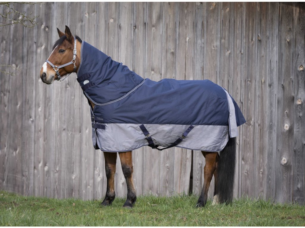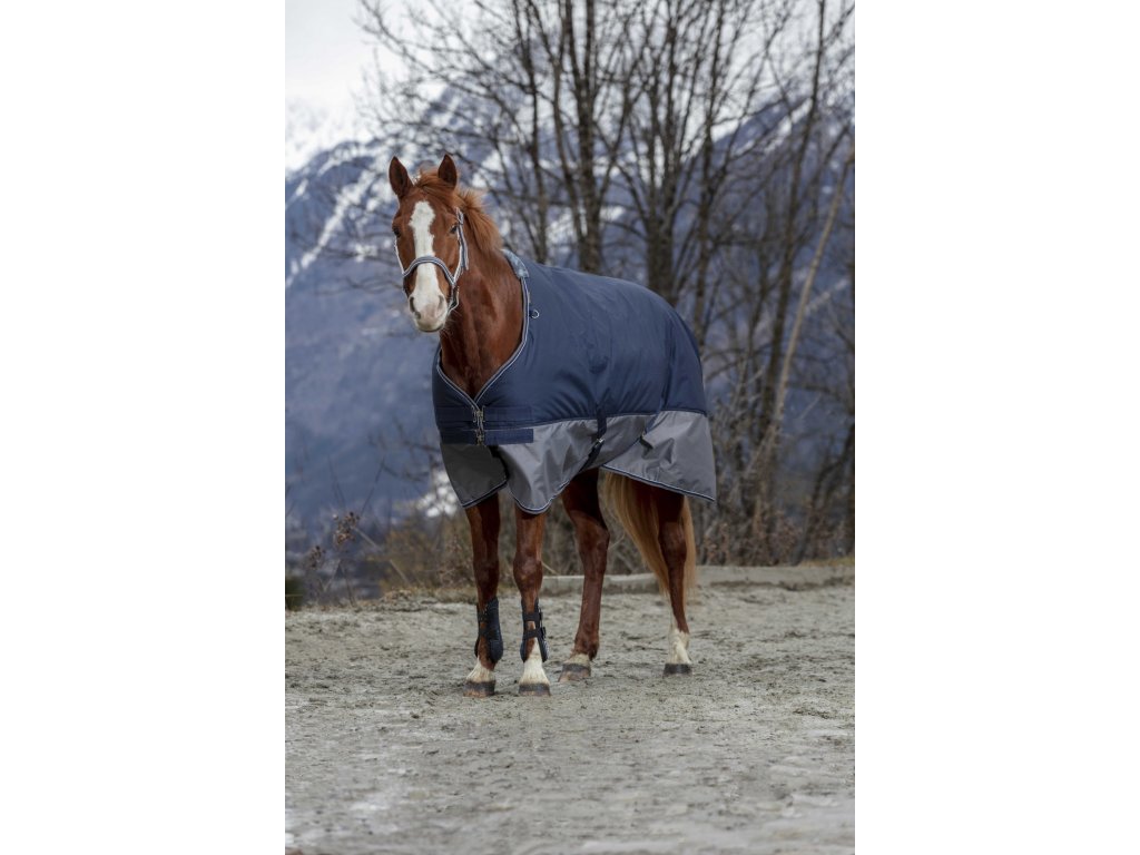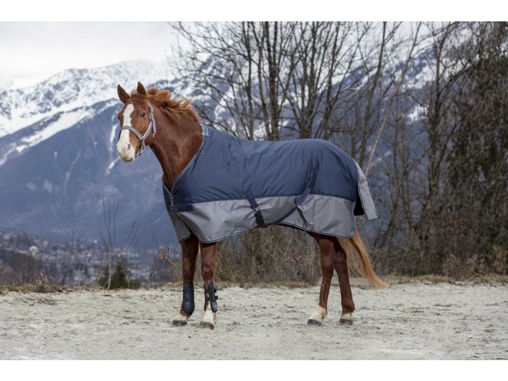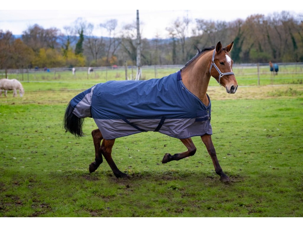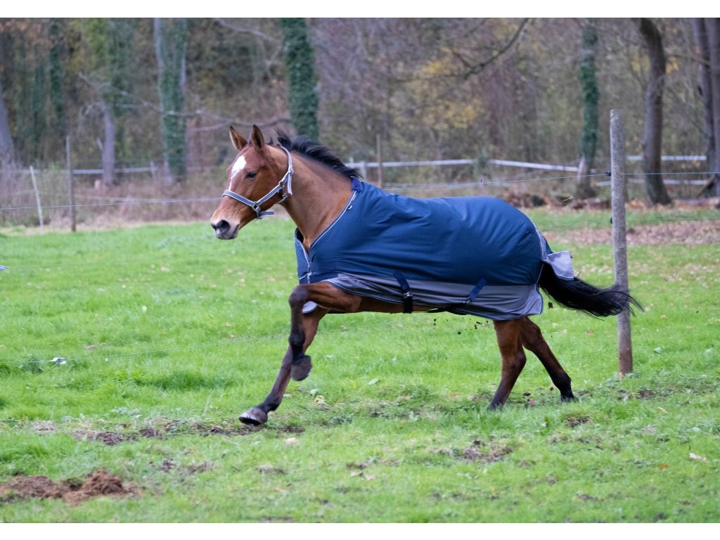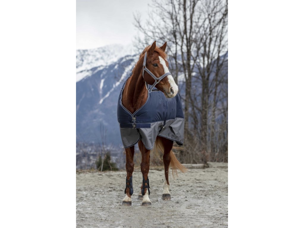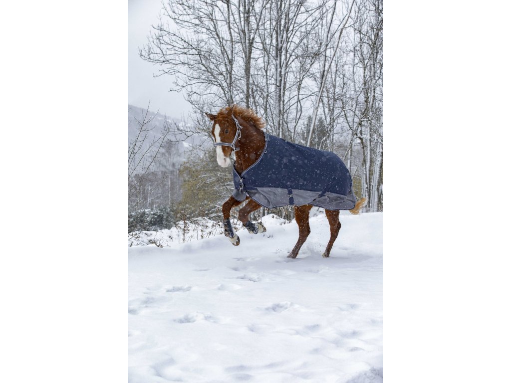 Tato nepromokavá výběhová deka se zateplením 50 g je vyrobena z vysoce odolného 600 D polyesteru, který je odolný vůči roztržení. Má podlepené švy pro spolehlivou ochranu před vlhkostí. Vnitřní stranu tvoří hladká nylonová podšívka, která zajišťuje maximální pohodlí při nošení. Ochranu zvyšuje velká nepromokavá klopa na ocas. V oblasti kohoutku je deka vybavena měkkým polstrováním ze syntetického beránku, které zabraňuje odření. Praktické křížové zapínání pod břichem zajišťuje bezpečné usazení při pohybu koně. Krční díl lze k této dece dokoupit samostatně.