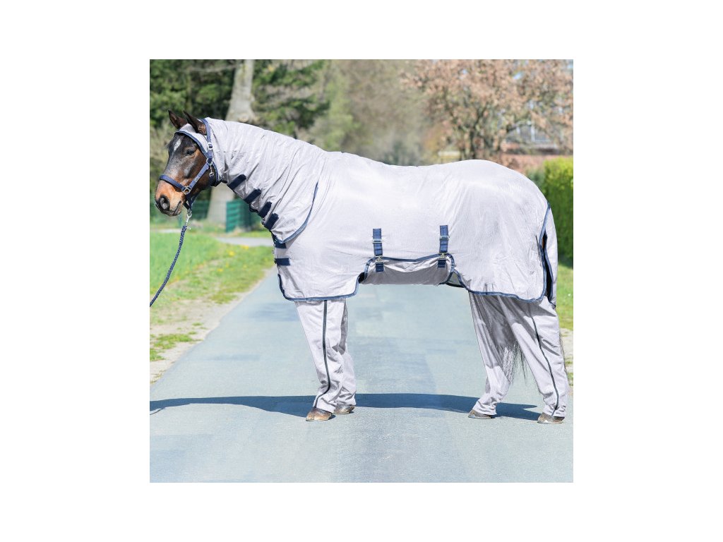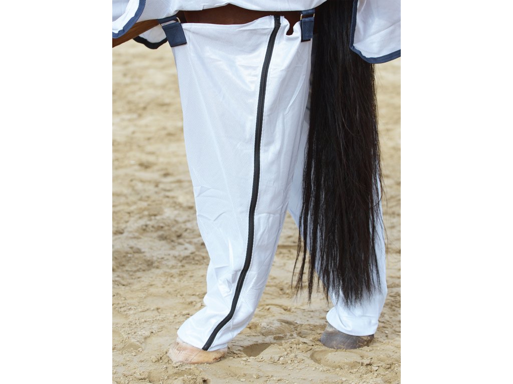 Náhradní ochranné díly pro zadní nohy k dece proti hmyzu Complete Plus od výrobce BUSSE. Nabízí vysoce spolehlivou ochranu proti hmyzu jakéhokoliv druhu. Zabraňuje před neklidem, stresem, vznikem zranění a odírání. Dále před kopáním i dupáním, a tím následně chrání před vyšším namáháním kopyt, šlach a vazů. Kompletní ochrana je velice výhodná např. při kování či přepravě koně. Díly jsou vyrobené z pevného a vysoce odolného 100% polyesterového materiálu, který je rychleschnoucí a prodyšný. Snadné připnutí k dece pomocí dvou suchých zipů. Oblékání dále usnadňuje klasický zip. Zakončené elastickou gumou, která zamezuje zalétnutí hmyzu pod síťovou ochranu. Nepřekáží v pohybu a zajišťují optimální komfort při nošení. Dostupné ve více velikostech, dodávané v páru.