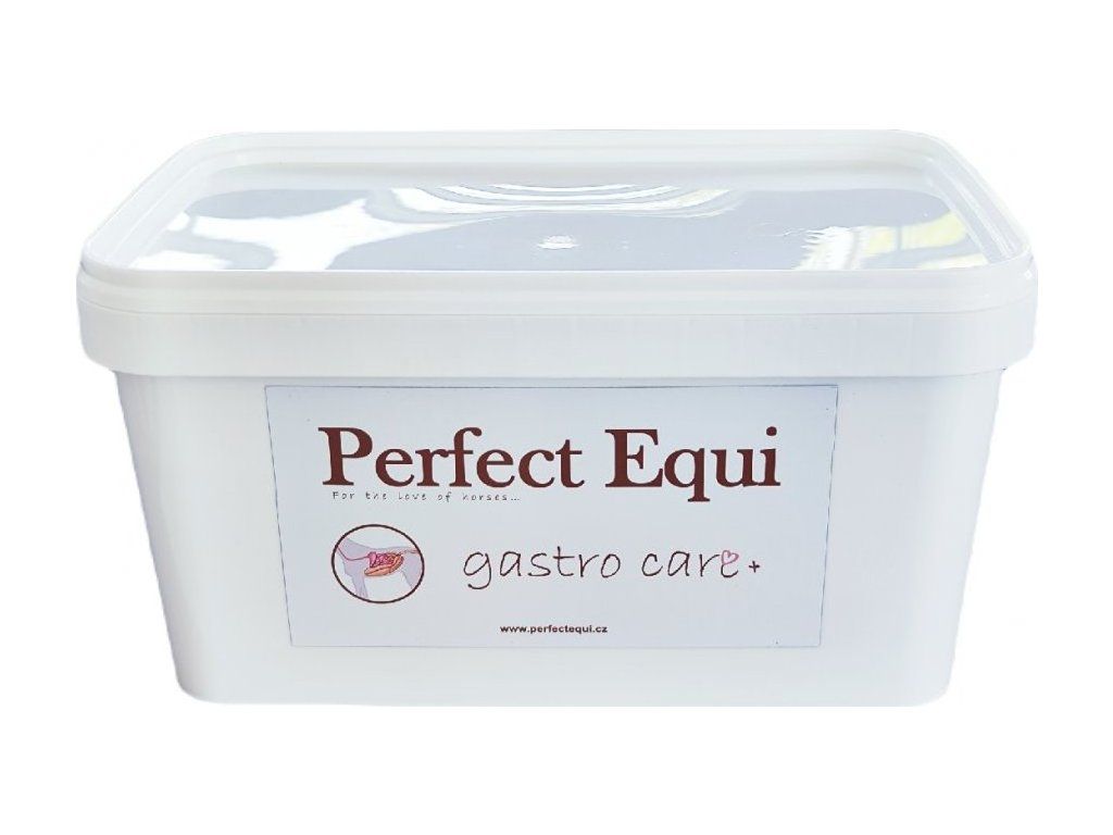 Perfect Equi GASTRO CARE+ je vylepšená, silnější a chutnější varianta dlouhodobě prověřeného Gastro Care. Toto doplňkové krmivo pro koně přirozenou cestou pomáhá chránit nejen žaludeční sliznici, ale také střevo. Přispívá k obnovení poškozené střevní výstelky a silné střevní mikroflóry. Zdravé střevo a jeho správné osídlení je klíčem k efektivnímu trávení živin z přijatého krmiva, lepší obranyschopnosti organismu a psychické pohody vašeho koně. Díky komplexnímu působení přináší úlevu od bolesti trávícího traktu a zlepšení kondice koně. Navíc dodává tělu cenné aminokyseliny, přírodní antioxidanty, polyfenoly a mnoho dalších. Obsahuje látky, které na sebe vážou patogenní bakterie ve střevech a ty jsou následně z těla vyloučeny. Produkt není mineralizovaný. Neměl by chybět v jídelníčku nejen u koně s podezřením na vředy či poškozené střevo, ale také v žádném jídelníčku sportovce či koně v rekonvalescenci. Vhodné podávat jako péči o střevo po odčervení (1 balení vystačí na vhodnou podporu po odčervení).
