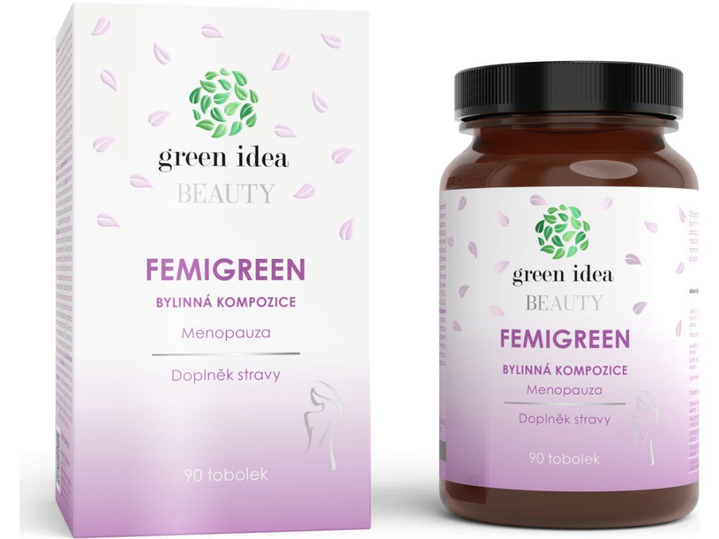 Femigreen - Menopauza. Doplněk stravy. Originální receptura tobolek FEMIGREEN v sobě spojuje sílu bylin, minerálů a dalších hodnotných látek, které přirozeně podporují vaše tělo během přechodu. Tato unikátní kompozice má blahodárný účinek na projevy menopauzy – podporuje hormonální rovnováhu, ulevuje od návalů horka a přispívá ke klidnému spánku. Staletími ověřené účinky bylin – pro pocit pohody a energie.