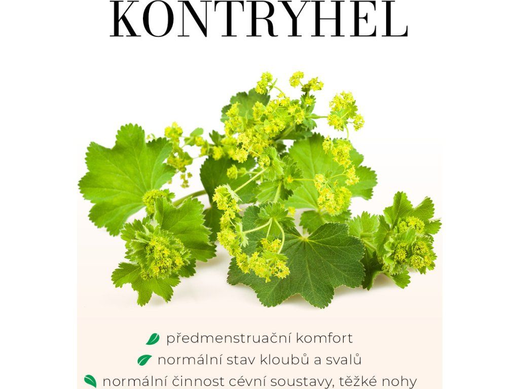 Složení: Jetel luční červený (Trifolium pratense) stand. extrakt z listu a květu (isoflavony 8 %), Řeřicha peruánská (Lepidium Meyenii) extrakt z kořene (10:1), Andělika čínská (Angelica sinensis) extrakt z kořene (5:1), Kozlík lékařský (Valeriana officinalis) stand. extrakt z kořene (kyselina valerenová 0,8 %), Kontryhel žlutozelený (Alchemilla xanthochlora) extrakt z nadzemní části rostliny (4:1), Pupalka dvouletá (Oenothera biennis) olej, Drmek obecný (Vitex agnus-castus) extrakt ze semen (10:1), Aquamin Mg – hydroxid hořečnatý (magnesium hydroxide), Lékořice lysá (Glycyrrhiza glabra) stand. extrakt z kořene (glycyrhizová kyselina 20 %), Damiána pravá (Turnera diffusa) extrakt z listů (10:1), Granátovník obecný (Punica granatum) extrakt ze slupky (10:1), stearan hořečnatý (plnidlo), vegetariánská kapsle.