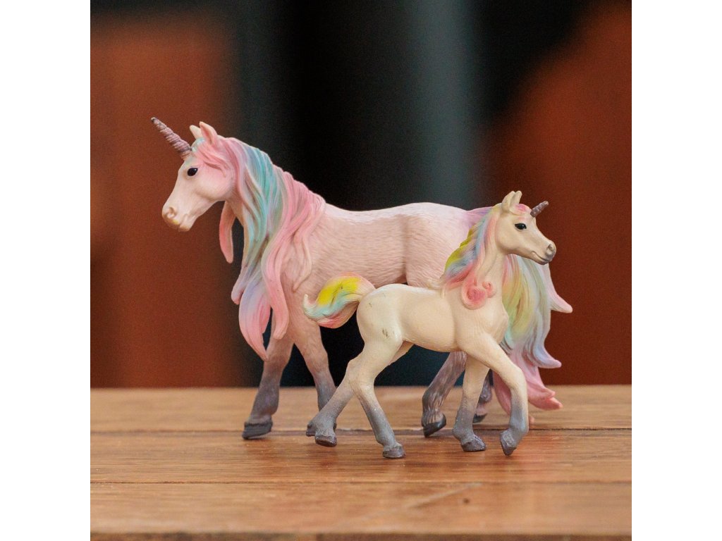 - půvabný set obsahuje majestátní jednorožčí klisnu a její roztomilé hříbě