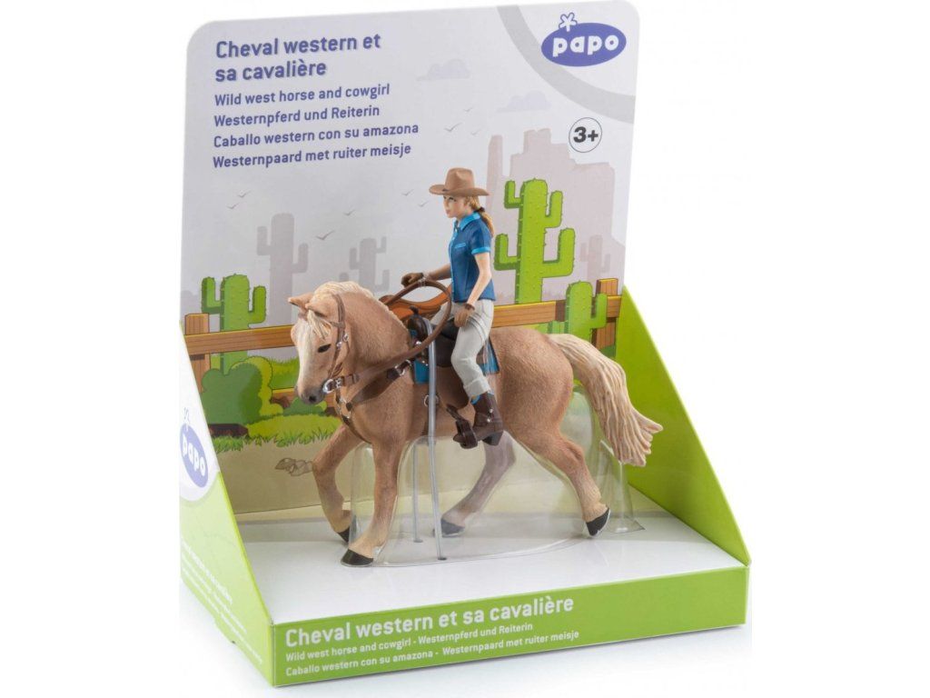 Tyto detailně zpracované figurky kovbojské dvojice potěší malé milovníky koní i sběratele. Všechny figurky Papo jsou navrženy a vyvinuty ve Francii s cílem spojit učení a hru pro děti. Rozmanité figurky jsou zdrojem zábavy a podněcují dětskou představivost, která je důležitá pro jejich rozvoj. Proto se často používají v metodě Montessori. Figurky jsou ručně malované s největším důrazem na detail. Díky vysoké kvalitě zpracování a realistickému ztvárnění jsou velmi oblíbené také u sběratelů. Není vhodné pro děti do 3 let.