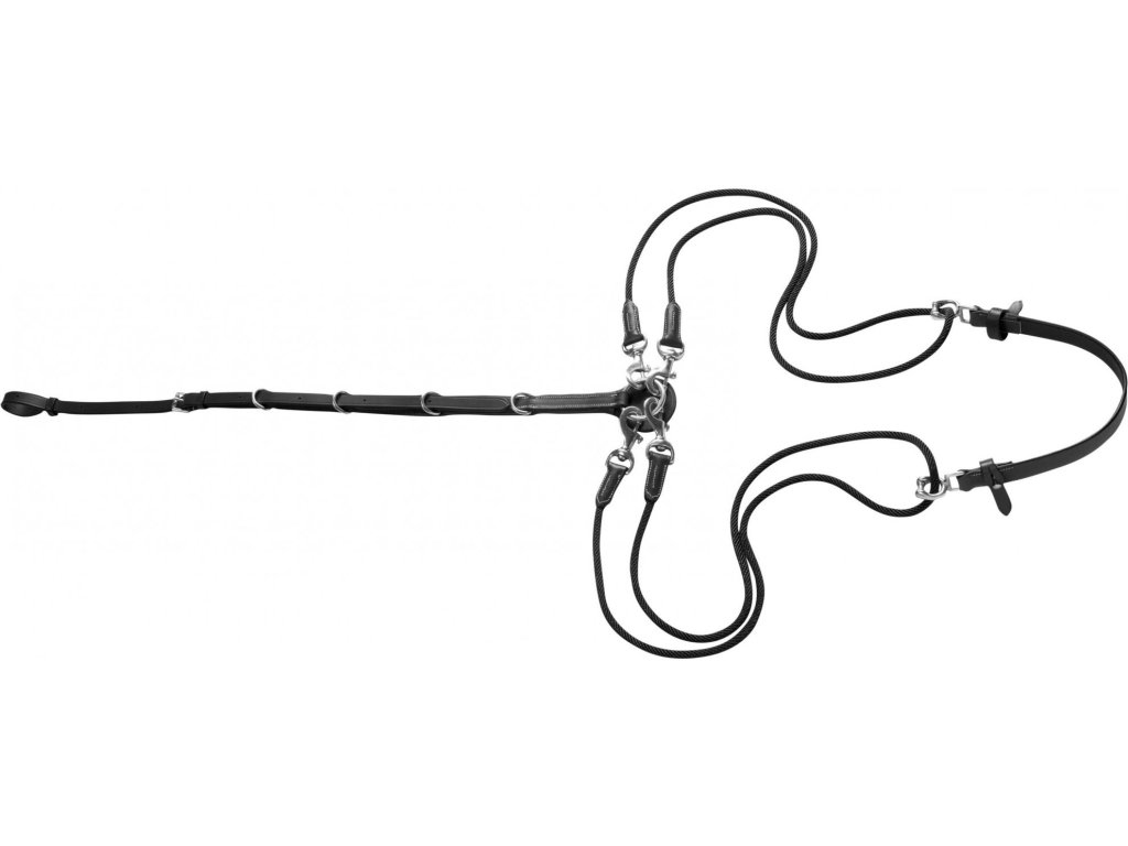 Lonžovací pomůcka se všemi potřebnými komponenty pro upevnění k nátylníku a obřišníku. V oblasti plecí má měkké polstrování. Gogue je speciální pomocná otěž určená především pro tvarování a práci s krkem koně. Působí na tři hlavní body - krk, hubu a týl koně. Vybavený karabinami z nerezové oceli. Velikost lze do určité míry upravovat dle potřeby.