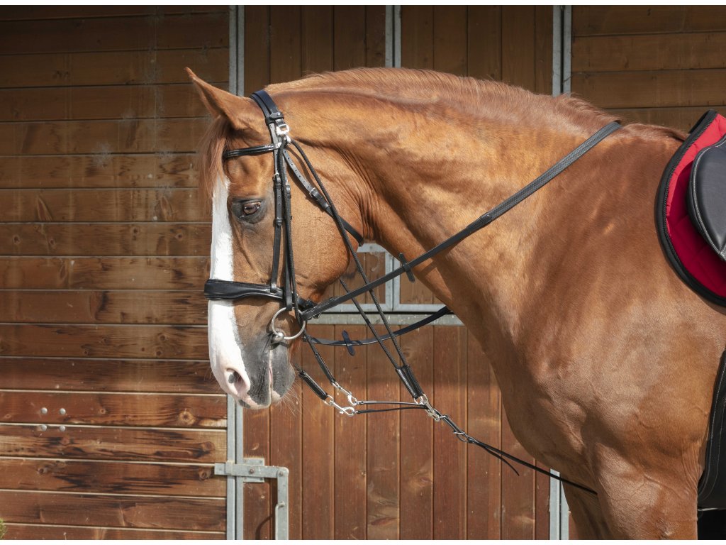 Anatomicky tvarovaná uzdečka se švédským kombinovaným nánosníkem. Opatřena je měkkým polstrováním na nátylníku, nánosníku i čelence pro maximální pohodlí. Veškeré kování je...