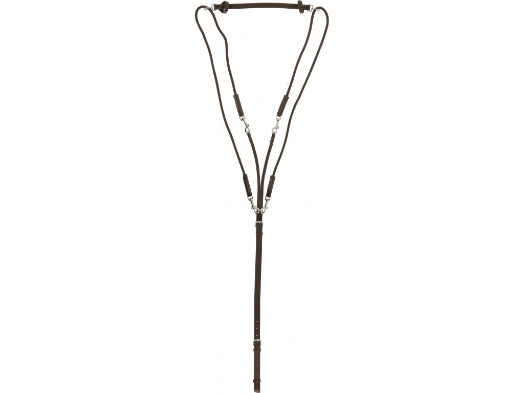 Lonžovací pomůcka se všemi potřebnými komponenty pro upevnění k nátylníku a obřišníku či podbřišníku. Gogue je speciální pomocná otěž určená především pro tvarování a práci s krkem koně. Působí na tři hlavní body - krk, hubu a týl koně. Vybavený karabinami z nerezové oceli. Vyroben z kvalitní bůvolí kůže.