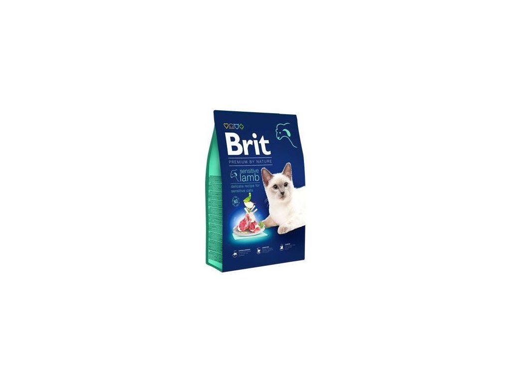 Hypoalergenní jehněčí receptura pro dospělé kočky s citlivým trávením. Lákavé a chutné krmivo vyrobené z přírodních surovin pro každodenní zdravou výživu všech koček. S omáčkou z kuřecích jater. S jablečnou dužinou – přirozený zdroj vlákniny. S rozmarýnem, hřebíčkem, kurkumou a citrusy – přírodní antioxidanty. S prebiotiky. Bez pšenice, kukuřice a soji. Složení: dehydrované jehněčí 20%, rýže, dehydrovaná krůta 15%, hrášek, kuřecí tuk, sušená jablečná dužina, lososový olej 3%, hydrolyzovaná kuřecí játra, pivovarské kvasnice, sušený špenát 0,5%, mannan-oligosacharidy (150 mg/kg), frukto-oligosacharidy (120 mg/kg), juka schidigera (80 mg/kg), sušený rozmarýn (11 mg/kg), sušený hřebíček (11 mg/kg), sušené citrusy (11 mg/kg), sušená kurkuma (11 mg/kg). Analytické složky: hrubý protein 39,0 %, hrubý tuk 16,0 %, hrubá vláknina 2,5 %, hrubý popel 6,0 %, vlhkost 10,0 %, vápník 1,2 %, fosfor 0,8 %, sodík 0,3 %, hořčík 0,03 %. Nutriční aditiva v 1 kg: vitamín A (3a672a) 20000 IU, vitamín D3 (3a671) 850 IU, vitamín E (3a700) 600 mg, vitamín C (3a312) 250 mg, taurin (3a370) 2150 mg, biotin (3a880) 1,7 mg, zinek (3b606) 140 mg, mangan (3b504) 50 mg, železo (3b106) 50 mg, měď (3b406) 10 mg, jód (3b201) 3,5 mg, selen (3b810) 0,16 mg, L-methionin (3c305) 4000 mg. Omega-3: 0,2 %, Omega-6: 2,25 %. Metabolizovatelná energie: 3870 kcal/kg. Krmný návod: v závislosti na preferencích vaší kočky můžete krmivo podávat suché, zvlhčené vodou nebo v kombinaci s kapsičkami Brit Premium. Doporučená denní dávka je uvedena v krmné tabulce. Pokud podáváte nové krmivo poprvé, smíchejte ho s předešlým krmivem a podávejte po dobu 3-5 dní, postupně zvyšujte dávku krmiva Brit Premium. Nezapomeňte vždy dát své kočce misku s čerstvou pitnou vodou. Spotřebujte nejlépe do data uvedeného na obalu. Skladujte na suchém a chladném místě, chraňte před přímým slunečním světlem.