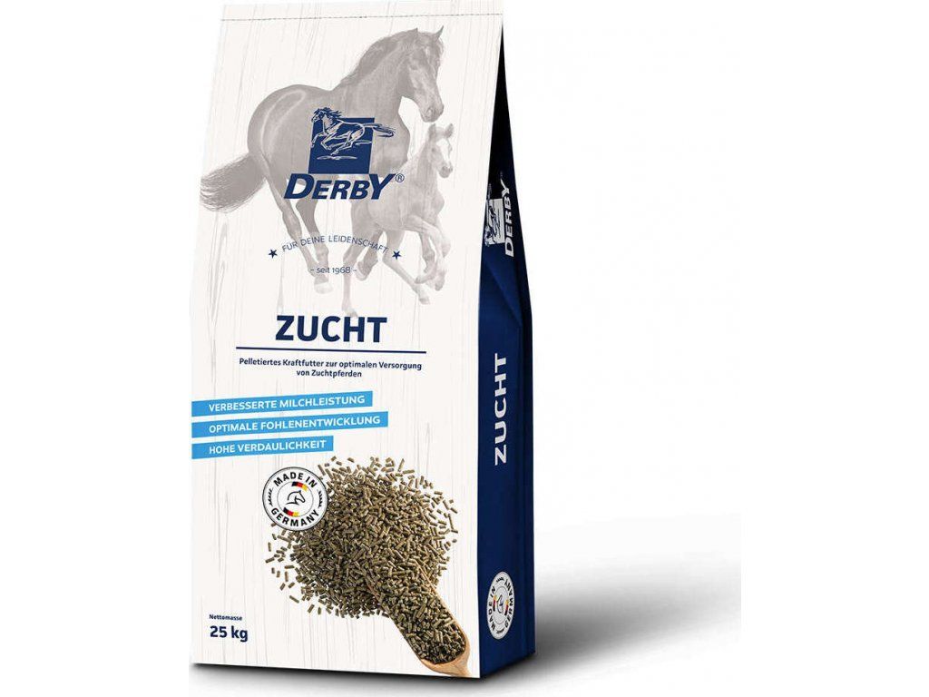 Dodejte své klisně potřebnou energii s doplňkovým chovatelským krmivem DERBY. Granulované krmivo nabízí optimální zásobu pro březí a kojící klisny a lze jej také univerzálně použít pro hříbata, odstavčata do 12 měsíce a hřebce. Zvýšené požadavky na energii a bílkoviny jsou pokryty a esenciální aminokyseliny zajišťují optimální vývoj. Kromě toho je podporována tvorba spermií a produkce mléka.