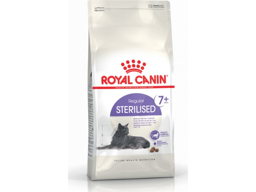 STERILISED 7+ pomáhá udržovat vitalitu po 7. roce života kočky a čelit prvním znakům stárnutí. Receptura je formulována s vyváženým obsahem vitamínů a minerálů. Tato složka je obohacena specifickými živinami včetně polyfenolů zeleného čaje, vitamínu C, EPA a DHA. STERILISED 7+ pomáhá omezit riziko nabírání na váze díky upravenému obsahu tuku a adekvátním denním dávkám. Obsahuje upravený obsah fosforu pro podporu renálního zdraví. Receptura pro udržení zdravého močového systému dospělých koček.