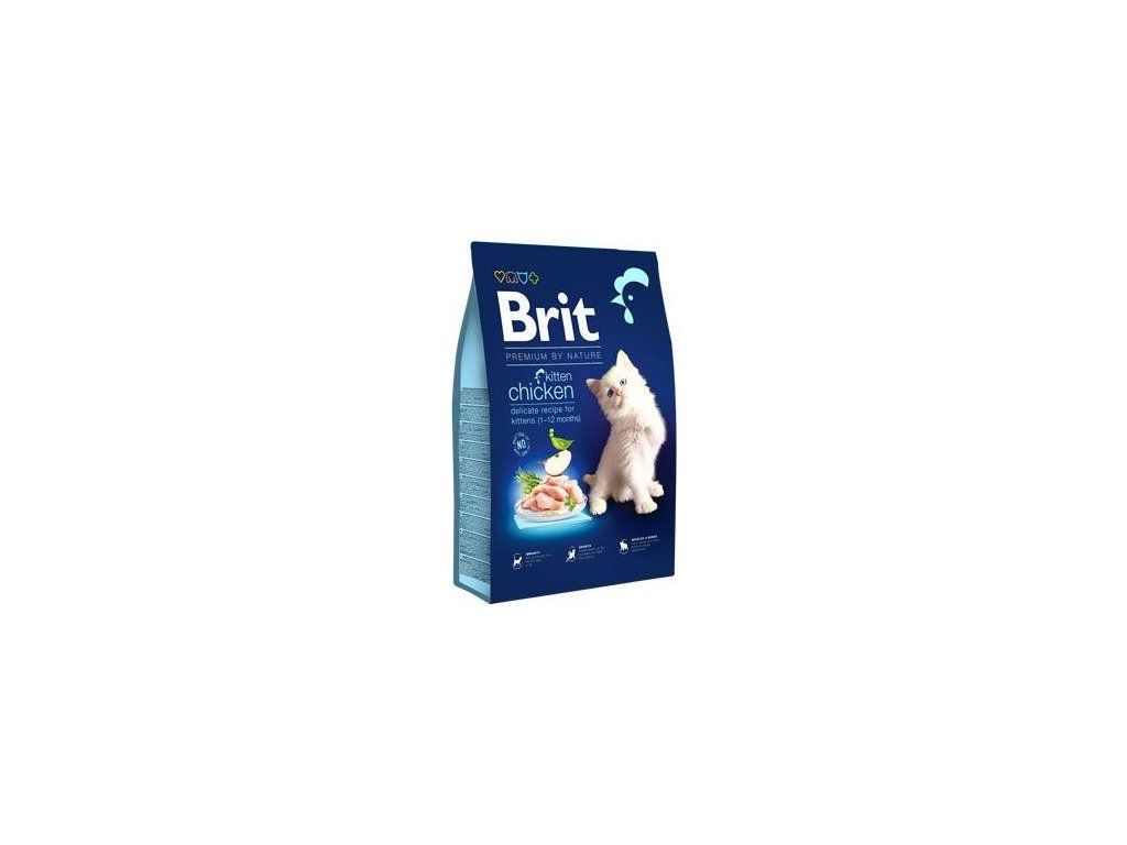Kuřecí receptura pro koťata (1-12 měsíců), vhodné rovněž pro březí nebo kojící kočky. Lákavé a chutné krmivo vyrobené z přírodních surovin pro každodenní zdravou výživu všech koček. S omáčkou z kuřecích jater. S jablečnou dužinou – přirozený zdroj vlákniny. S rozmarýnem, hřebíčkem, kurkumou a citrusy – přírodní antioxidanty. S prebiotiky. Bez pšenice, kukuřice a soji. Složení: dehydrované kuře 40%, rýže, kuřecí tuk, hrášek, dehydrovaný losos 4%, sušená jablečná dužina, hydrolyzovaná kuřecí játra 2%, lososový olej 2%, sušený špenát 0,5%, mannan-oligosacharidy (150 mg/kg), frukto-oligosacharidy (120 mg/kg), juka schidigera (80 mg/kg), sušený rozmarýn (12 mg/kg), sušený hřebíček (12 mg/kg), sušené citrusy (12 mg/kg), sušená kurkuma (12 mg/kg). Analytické složky: hrubý protein 40,0%, hrubý tuk 18,0%, hrubá vláknina 2,8%, hrubý popel 8,0%, vlhkost 10,0%, vápník 1,4%, fosfor 1,0%, sodík 0,5 %, hořčík 0,1%. Nutriční aditiva v 1 kg: vitamín A (3a672a) 22000 IU, vitamín D3 (3a671) 900 IU, vitamín E (3a700) 700 mg, vitamín C (3a312) 300 mg, taurin (3a370) 2300 mg, biotin (3a880) 1,8 mg, zinek (3b606) 150 mg, mangan (3b504) 55 mg, železo (3b106) 45 mg, měď (3b406) 11 mg, jód (3b201) 3,7 mg, selen (3b810) 0,17 mg, L-methionin (3c305) 4000 mg. Omega-3: 0,54%, Omega-6: 2,4%. Metabolizovatelná energie: 3930 kcal/kg. Krmný návod: v závislosti na preferencích vaší kočky můžete krmivo podávat suché, zvlhčené vodou nebo v kombinaci s kapsičkami Brit Premium. Doporučená denní dávka je uvedena v krmné tabulce. Pokud podáváte nové krmivo poprvé, smíchejte ho s předešlým krmivem a podávejte po dobu 3-5 dní, postupně zvyšujte dávku krmiva Brit Premium. Nezapomeňte vždy dát své kočce misku s čerstvou pitnou vodou. Spotřebujte nejlépe do data uvedeného na obalu. Skladujte na suchém a chladném místě, chraňte před přímým slunečním světlem.