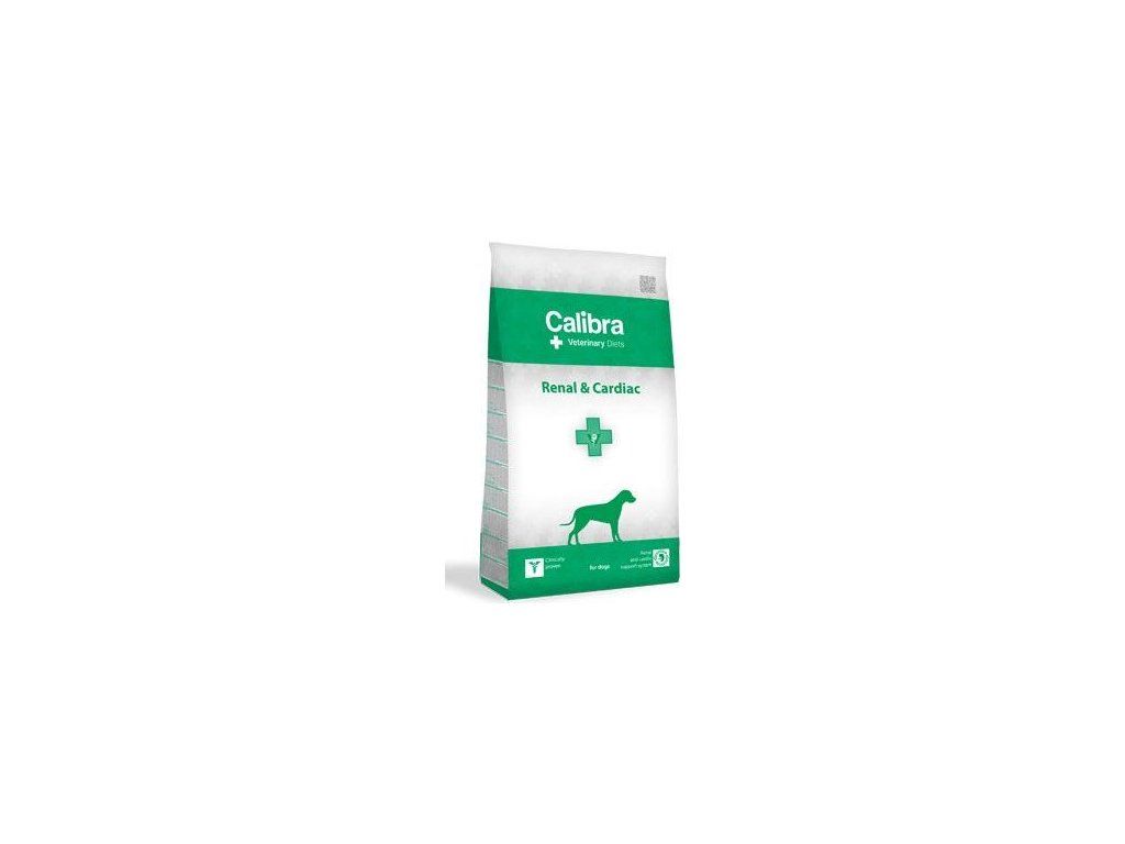 Calibra VD Dog Renal & Cardiac. Kompletní dietní krmivo pro psy. Jedná se o veterinární, dietní krmivo, které pomáhá při léčbě specifických onemocnění. Před použitím nebo před prodloužením doby používání se doporučuje vyžádat si stanovisko veterinárního lékaře. Renal and cardio support system: receptura s vysoce kvalitním proteinem – vejce, nízký obsah sodíku, nízký obsah fosforu a optimální koncentrace draslíku. Circulatory system health complex: pokročilá kombinace složek na podporu funkce ledvin a kardiovaskulárního systému: vysoký obsah argininu (zlepšuje průtok krve), vysoký obsah taurinu (podpora srdečního svalu), vitamíny & antioxidanty (polyfenoly a flavonoidy ze zeleného čaje a kurkumy), vysoká koncentrace omega 3 (zdrojem je lososový olej a řasy). Účel použití: dietetický management při renální insuficienci a renálním selhání, podpora při léčbě srdečních poruch, podpora léčby hypertenze. Složení: rýže (65 %), sušená vejce (18 %), kuřecí tuk (konzervováno tokoferoly), sušená jablka, lososový olej (3 %), hydrolyzovaná kuřecí játra, pivovarské kvasnice, uhličitan vápenatý (1,5 %), řasy (1 %, Schizochytrium limacinum), citrát draselný (0,9 %, látka pro alkalizaci moči), frukto-oligosacharidy (220 mg/kg), ß-glukany (200 mg/kg), mannan-oligosacharidy (180 mg/kg), Yucca schidigera (150 mg/kg), kurkuma a bezkofeinový extrakt ze zeleného čaje (zdroje flavonoidů 160 mg/kg a polyfenolů 80 mg/kg), Lactobacillus acidophilus HA–122 inaktivovaný (15 × 109 buněk/kg). Zdroj bílkovin: sušená vejce. Kompletní krmivo. Před použitím nebo před prodloužením doby používání se doporučuje vyžádat si stanovisko veterinárního lékaře. Doba podávání krmiva by měla být: v případě chronické ledvinové nedostatečnosti od počátku do 6 měsíců, v případě dočasné ledvinové nedostatečnosti od 2 do 4 týdnů, v případě chronické srdeční nedostatečnosti od počátku do 6 měsíců. Krmivo podávejte suché nebo mírně navlhčené. Voda musí být vždy k dispozici. Doporučené denní dávkování je uvedeno v krmné tabulce a mělo by být přizpůsobeno aktuálnímu stavu.