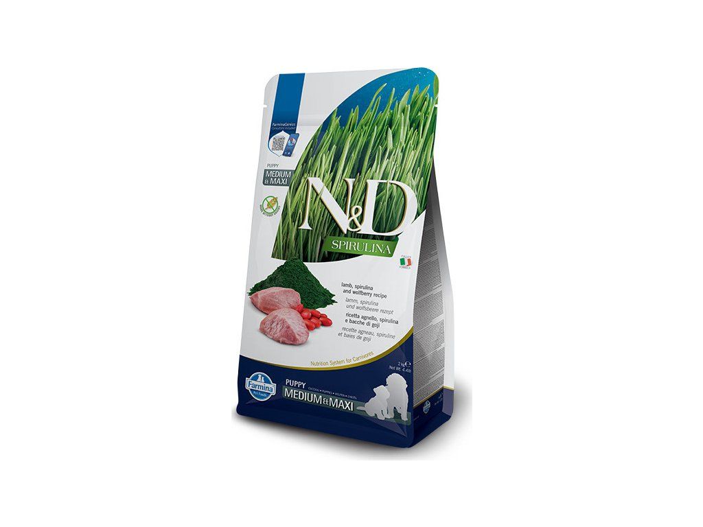 Produktová řada N&D Spirulina je novinka mezi krmivy pro domácí mazlíčky, kterou společnost Farmina vyvinula pro spokojenost a pohodu aktivních psů a koček. Díky obsahu spiruliny ("superpotravina"), která se vyznačuje celou řadou skvělých vlastností a obsahuje velké množství prospěšných živin, se jedná o krmivo, které ocení vysoce aktivní mazlíčci. Krmiva s označením Spirulina jsou vyrobena bez obilovin a obsahují více než 90 % bílkovin živočišného původu. Kompletní krmivo pro štěňata a březí nebo kojící feny.