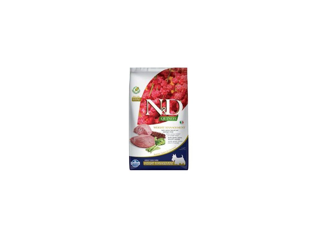Kompletní vyvážené krmivo pro dospělé psy malých plemen (Jehně, quinoa, brokolice, chřest). Farmina N&D Quinoa Weight Management je krmivo pro zvláštní účely výživy psů určené ke snížení nadměrné tělesné váhy.