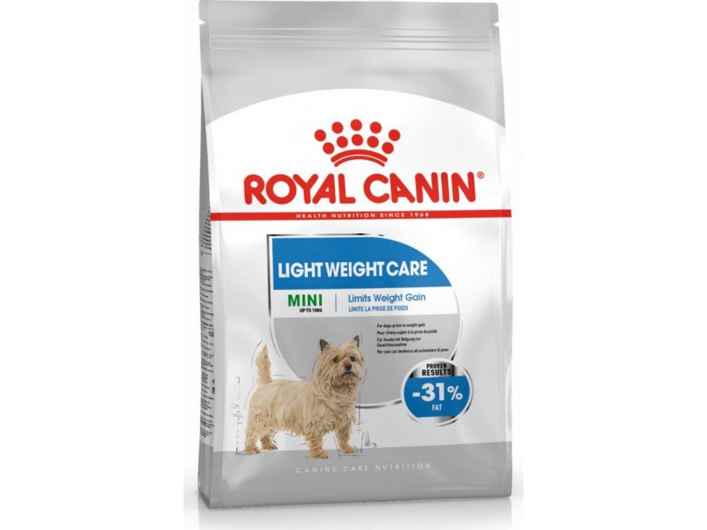 Kompletní krmivo pro dospělé a stárnoucí psy malých plemen (od 1 do 10 kg) - starší 10 měsíců - se sklonem přibírání na váze. S vysokým obsahem bílkovin (30%), se sníženým obsahem tuku (11%), s omega-6 a omega-3 mastnými kyselinami a L-karnitiem. Nadváha škodí zdraví a dokonce negativně ovlivňuje délku života. Proto by se mělo již při prvních příznacích nadváhy zasáhnout, aby se nestala dlouhodobým problémem. Royal Canin Mini Light Weight Care má vysoký obsah proteinů, které podporují udržování svalové hmoty a konstrukce. Snížení kalorií o 15 %* a nízký obsah tuku usnadňují udržení ideální hmotnosti. L-karnitin mobilizuje vlastní tukové zásoby organismu a podporuje spalování tuků.