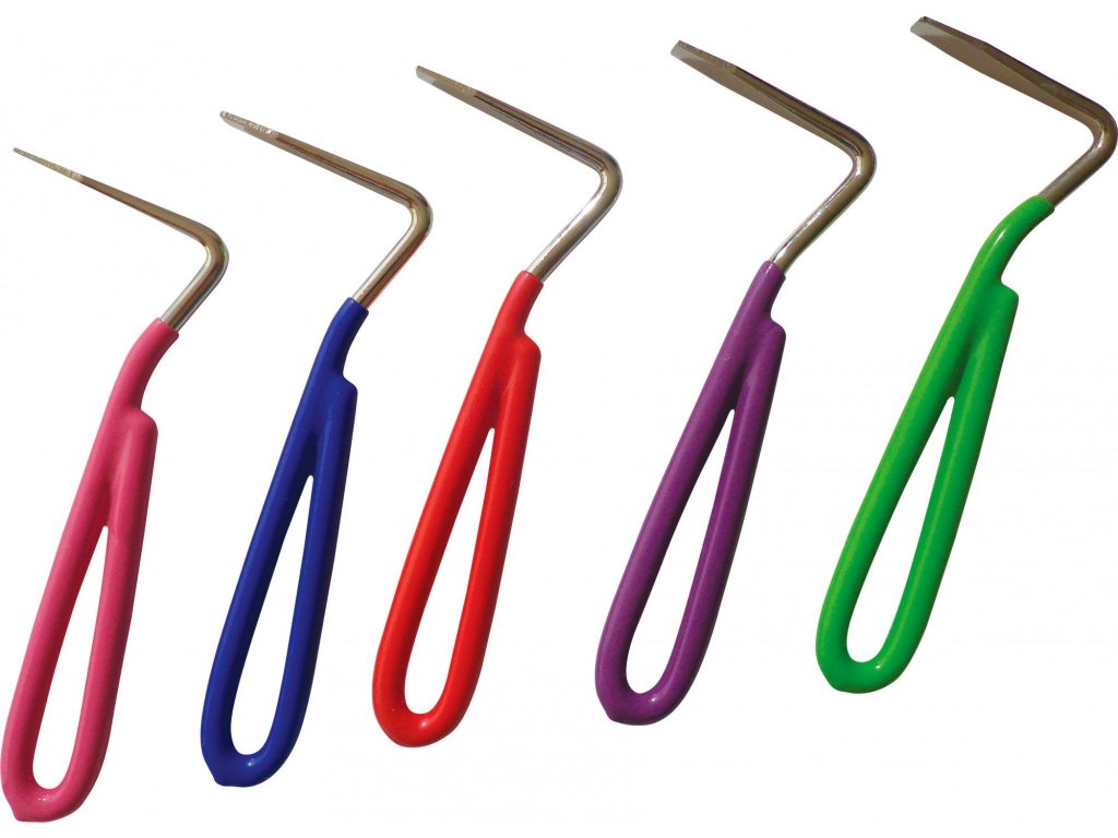 Kopytní háček pro základní čištění kopyt. Rukojeť potažená vinylem zajišťuje pohodlný a jistý úchop při práci. Produkt je dodáván v náhodných barevných variantách.