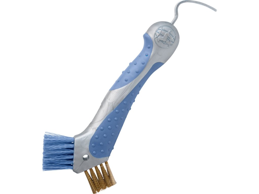 Inovativní háček na kopyta, který je odolný a má ergonomické tvarování. Díky patentovanému tvaru si snadno poradí i s nejodolnějším bahnem a nečistotami, takže kopyta vašeho koně budou vždy dokonale čistá. Pevné štětiny zajišťují efektivní čištění i v těžko dostupných místech, zatímco ergonomická rukojeť poskytuje pohodlný a jistý úchop.