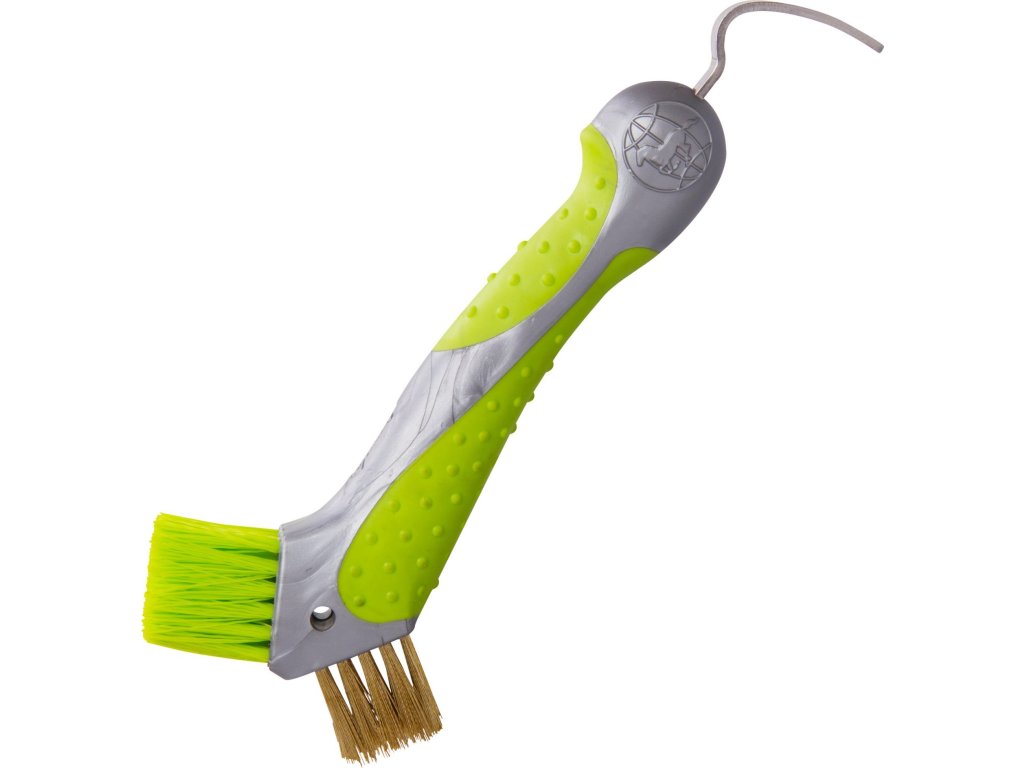 Inovativní háček na kopyta, který je odolný a má ergonomické tvarování. Díky patentovanému tvaru si snadno poradí i s nejodolnějším bahnem a nečistotami, takže kopyta vašeho koně budou vždy dokonale čistá. Pevné štětiny zajišťují efektivní čištění i v těžko dostupných místech, zatímco ergonomická rukojeť poskytuje pohodlný a jistý úchop.