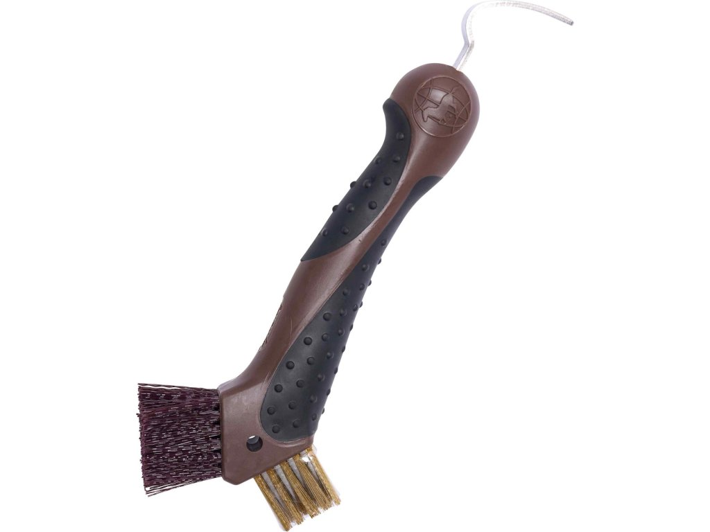 Inovativní háček na kopyta, který je odolný a má ergonomické tvarování. Díky patentovanému tvaru si snadno poradí i s nejodolnějším bahnem a nečistotami, takže kopyta vašeho koně budou vždy dokonale čistá. Pevné štětiny zajišťují efektivní čištění i v těžko dostupných místech, zatímco ergonomická rukojeť poskytuje pohodlný a jistý úchop.