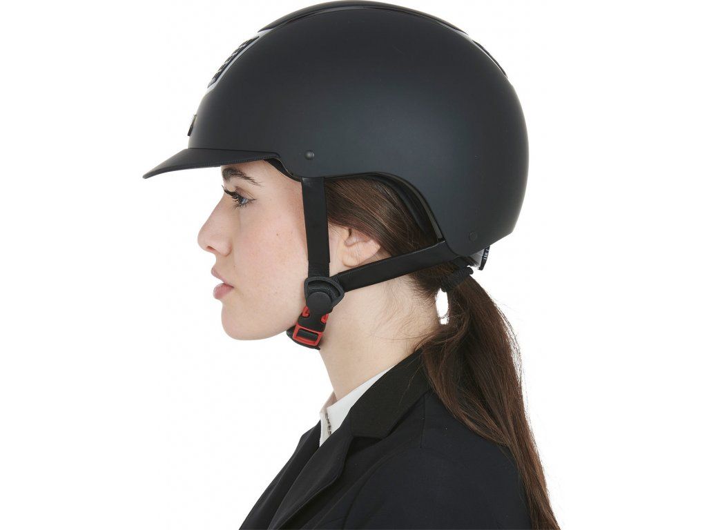 Ultralehká bezpečnostní přilba od výrobce Equestro, perfektně sedí na hlavě, moderní design, jednoduchý systém nastavení. Vybavena pohodlným a prodyšným vnitřním polstrováním. Opatřena vynikajícím ventilačním systémem. Helma splňuje aktuální evropskou normu VG01.040 2014-12. K dispozici ve více barevných provedeních. Vyráběna ve velikostech S, M a L.
