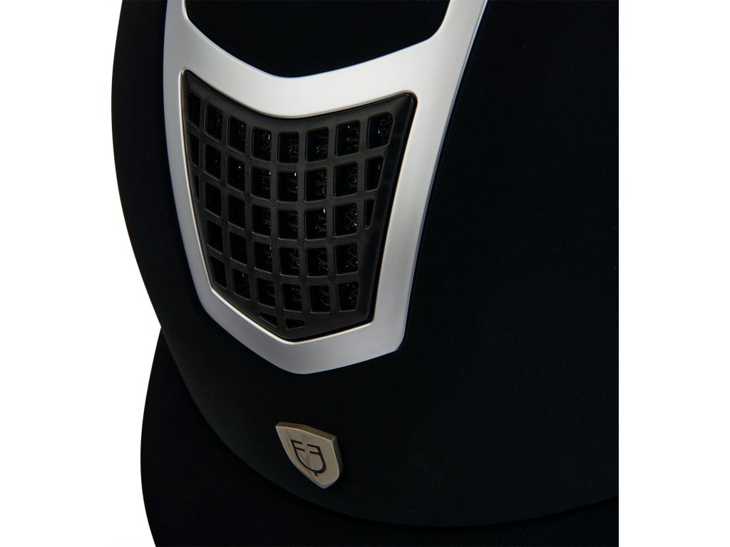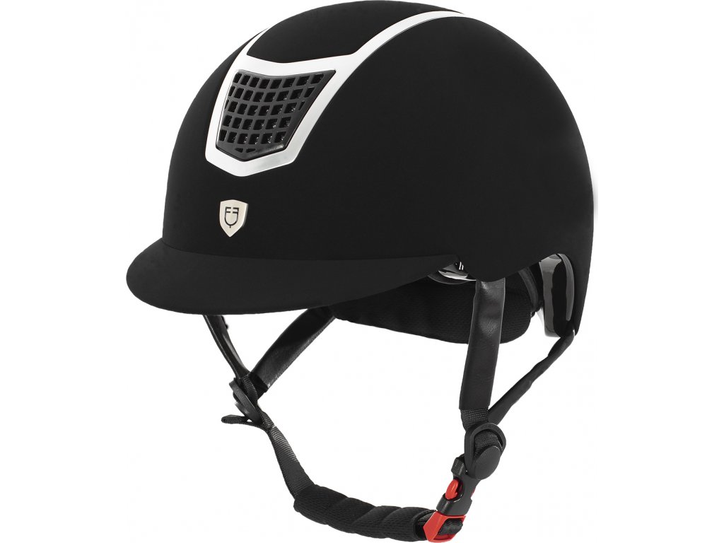 Ultralehká bezpečnostní přilba od výrobce Equestro, perfektně sedí na hlavě, moderní design, jednoduchý systém nastavení. Vybavena pohodlným a prodyšným vnitřním polstrováním. Opatřena vynikajícím ventilačním systémem. Helma splňuje aktuální evropskou normu VG01.040 2014-12. Má elegantní sametový vzhled a je dispozici ve více barevných provedeních. Vyráběna ve velikostech S, M a L.