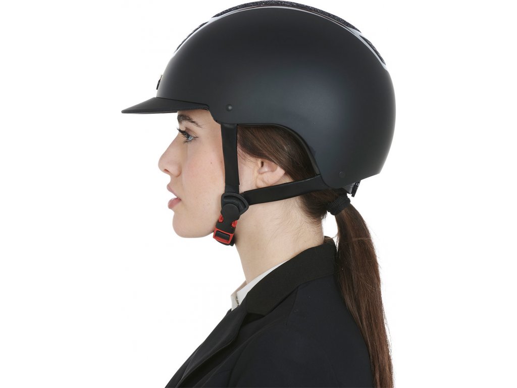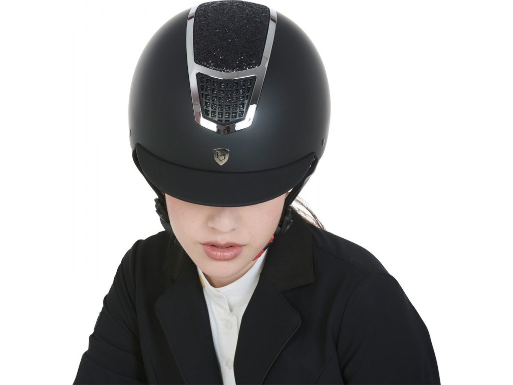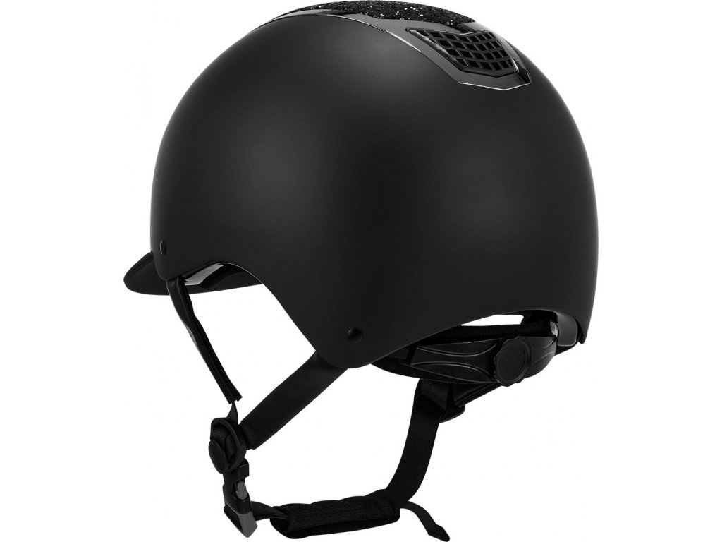 Ultralehká bezpečnostní přilba od výrobce Equestro, perfektně sedí na hlavě, moderní design, jednoduchý systém nastavení. Vybavena pohodlným a prodyšným vnitřním polstrováním, které lze vyjmout. Opatřena vynikajícím ventilačním systémem. Zdobena krásnými kamínky. Helma splňuje aktuální evropskou normu VG1 01,040 2014-12. K dispozici ve více barvách. Vyráběna ve velikostech S (53 - 55 cm), M (56 - 58 cm) a L (59 - 61 cm).