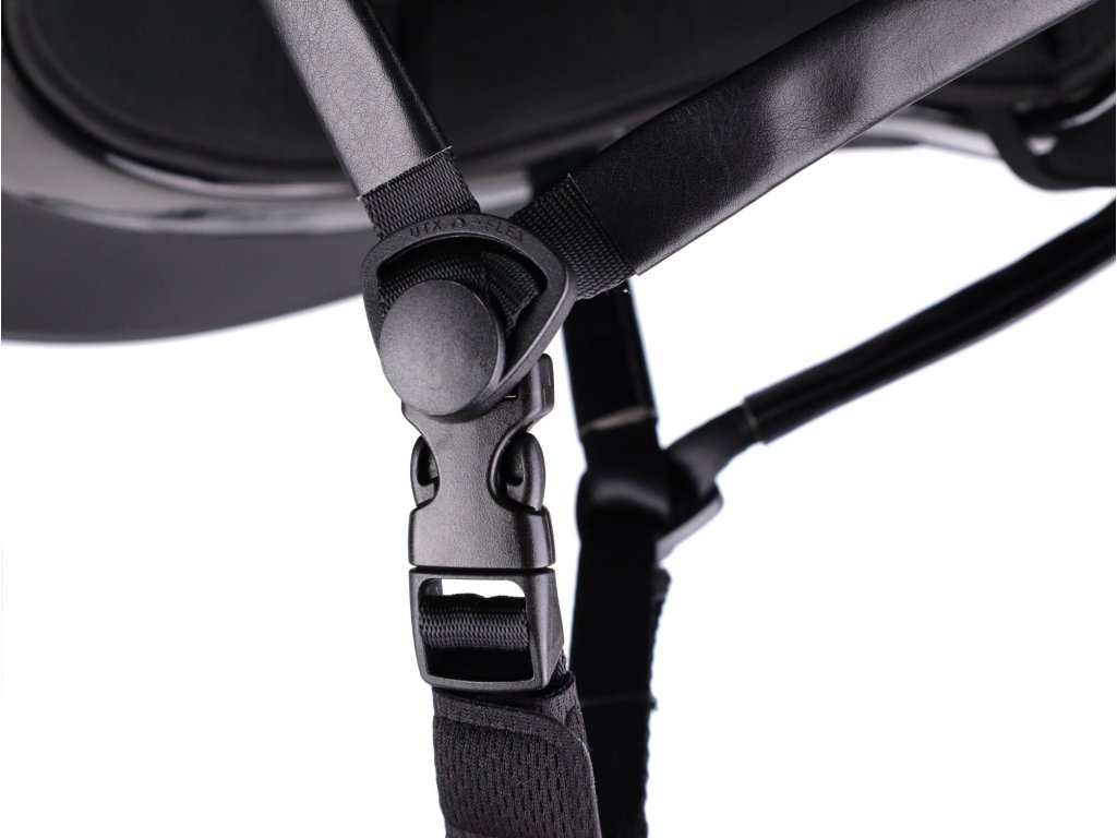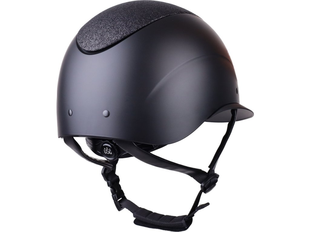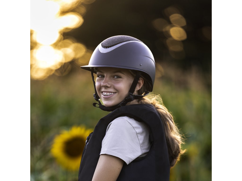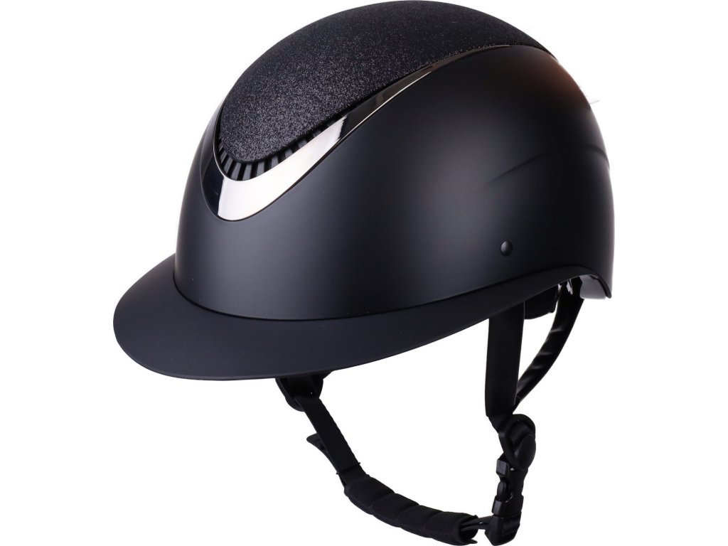 Velmi lehká jezdecká přilba Comfort Highlight, která zaujme svým okouzlujícím vzhledem, a to díky voděodolné vnější skořepině z ABS, širokému kšiltu a jemným třpytivým dekoracím. Závěrečný detail dodává lesklý kovový rám kolem třpytivých detailů. Měkká, odnímatelná a pratelná vnitřní vložka a dobrá cirkulace vzduchu prostřednictvím integrovaných ventilačních otvorů činí přilbu velmi pohodlnou. Čtyřbodový upínací systém s polstrováním pod bradou a kolečko v zadní části umožňuje individuální nastavení velikosti. Přilba je certifikována podle normy EN 1384:2023.