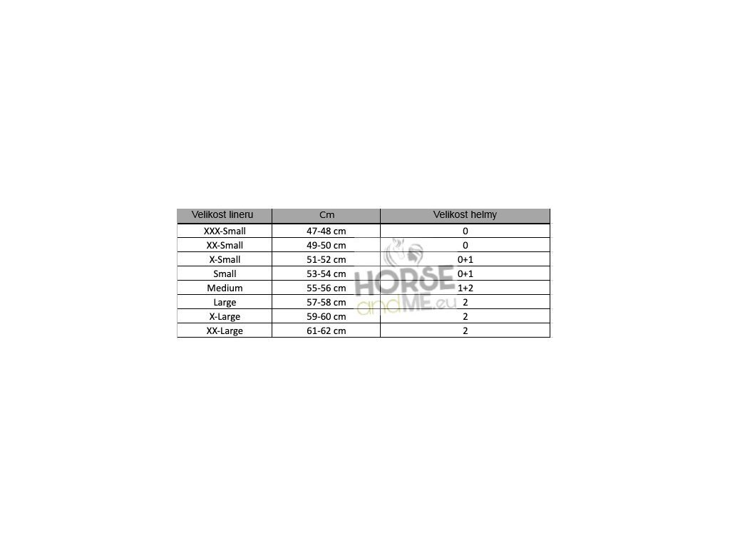 Helmy One K™ jsou dodávány bez vnitřního lineru, který je nutné dokoupit zvlášť. Liner nabízíme ve dvou variantách a v několika velikostech. Vnitřní liner se vyrábí pro kulatý tvar hlavy ve velikostech XXXS-XXL a nebo oválný tvar hlavy ve velikostech XS-XL. Zvolením správného lineru se helma dokonale přizpůsobí tvaru hlavy. Mezi obrázky naleznete velikostní tabulku pro zvolení správné velikosti vnitřního lineru.
